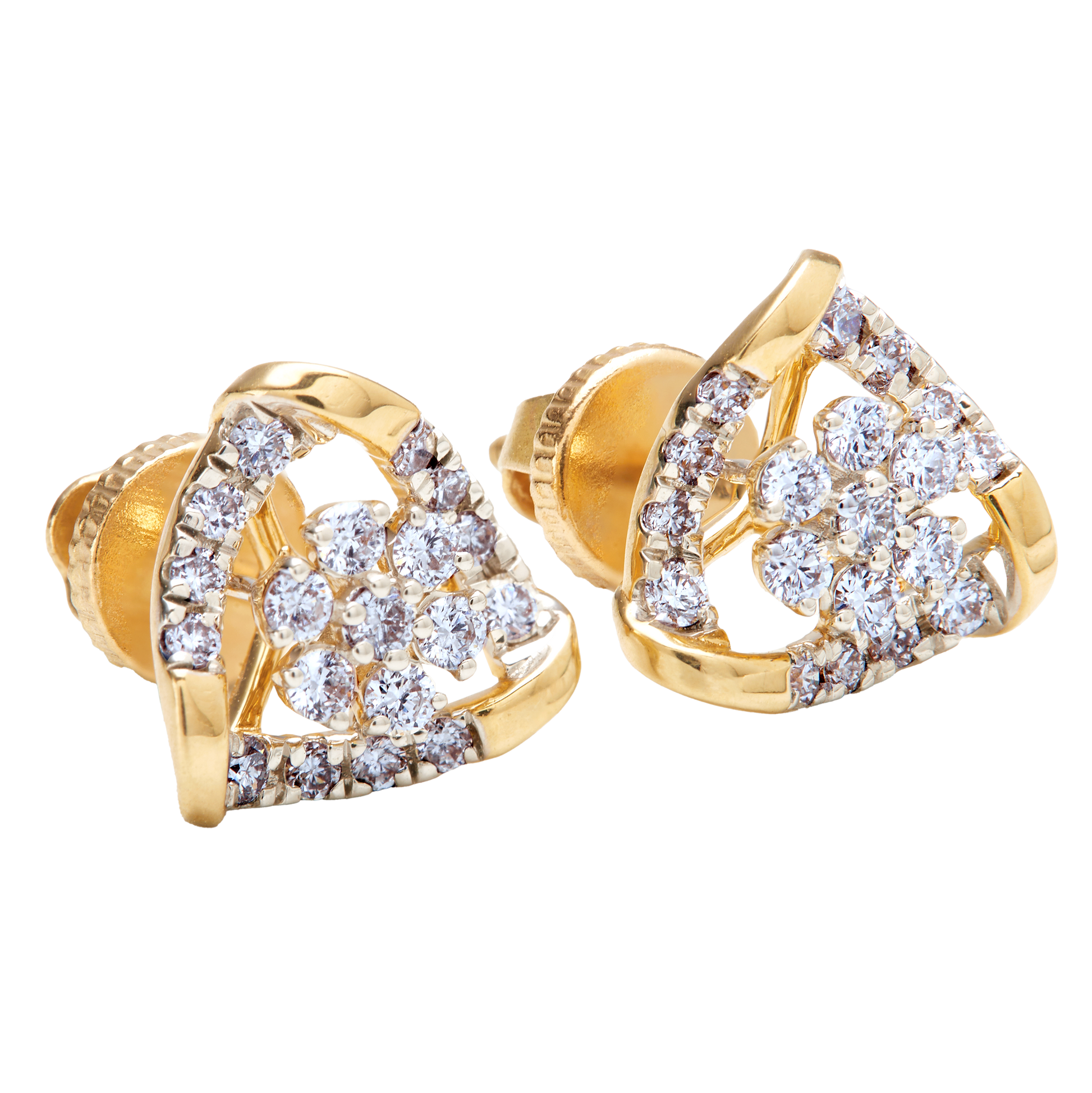 Artfully designed, our Framed Floral Diamond Studs feature a delicate floral center embraced by a sleek triangular frame. Diamonds studded midway along the frame add subtle brilliance, creating a modern yet graceful piece perfect for everyday elegance or special occasions.