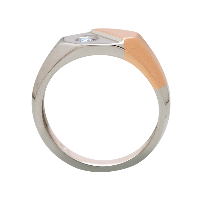 Modern meets classic in the Orion Dual-Tone Solitaire Band. Featuring a bold contrast of white and rose gold with a single round solitaire nestled into the design, this ring captures sophistication with a sharp, contemporary edge.