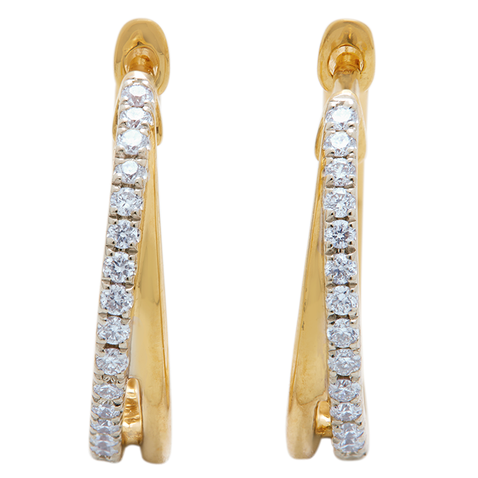 Add a touch of elegance with our Tapered Diamond & Gold Split Hoops. Featuring a tapered design at the hook, these earrings split into sparkling diamonds and a gold rim, offering a perfect blend of sophistication and modern style. Ideal for elevating both casual and formal looks.