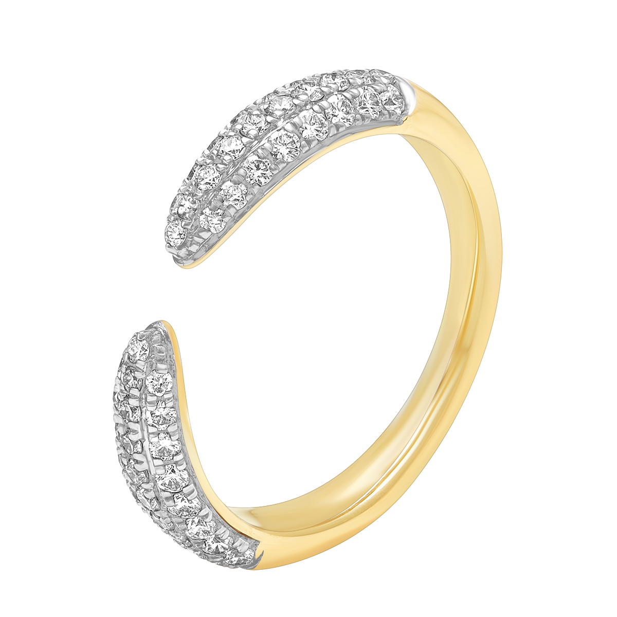 This striking gold band features a diamond open-top design, combining modern elegance with timeless appeal. Perfect for stacking or as a statement piece, it adds sophistication to any outfit.