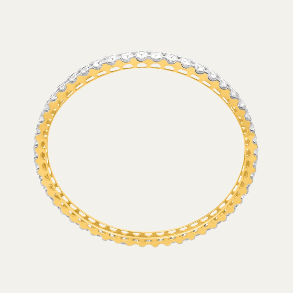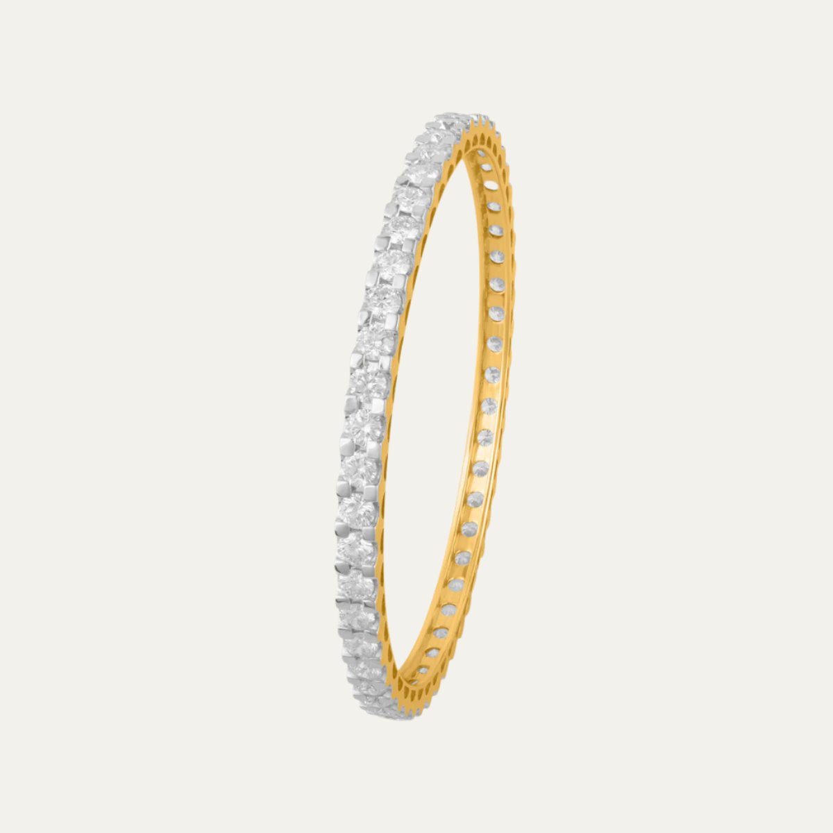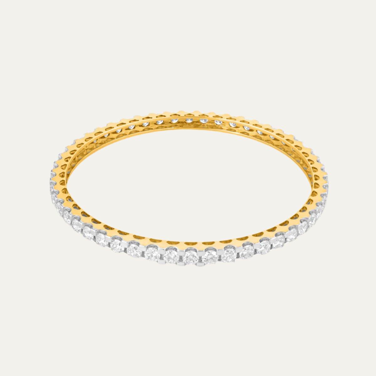 Captivate hearts with our diamond-adorned line bangle, featuring a V-shape collet for delicate elegance. Crafted in high-polish gold, its eternal sparkle will make you shine forever.