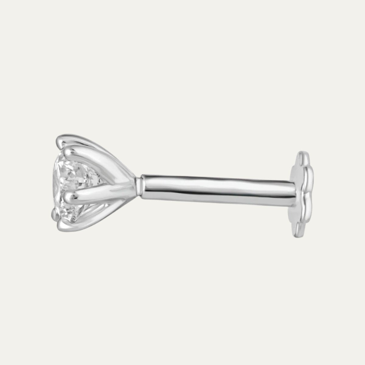 Whether worn for a special event or as an everyday statement, the solitaire stud nosepin with a classic 6-prong set collet becomes a cherished accessory that holds within it the memories of precious moments and the essence of your everlasting elegance.