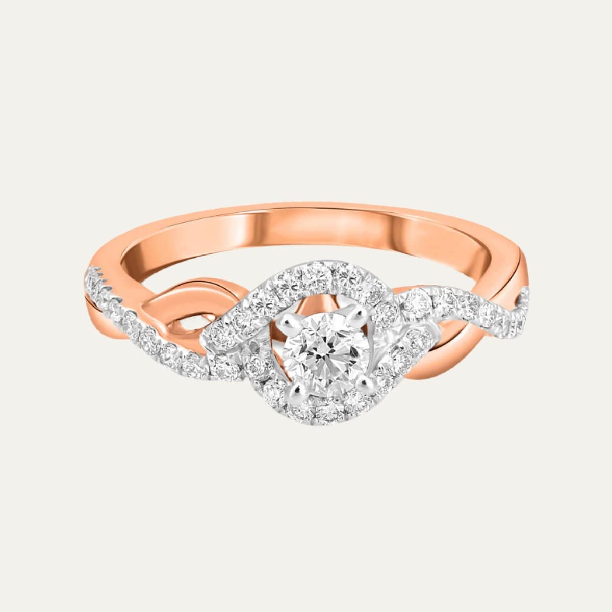Every detail of this engagement ring has been lovingly crafted, from the precise 4-prong setting that cradles the center diamond with utmost care to the gentle curves and contours of the bypass shank. The harmony of design and the choice of rose gold as the precious metal create a captivating synergy that exudes an alluring aura.
