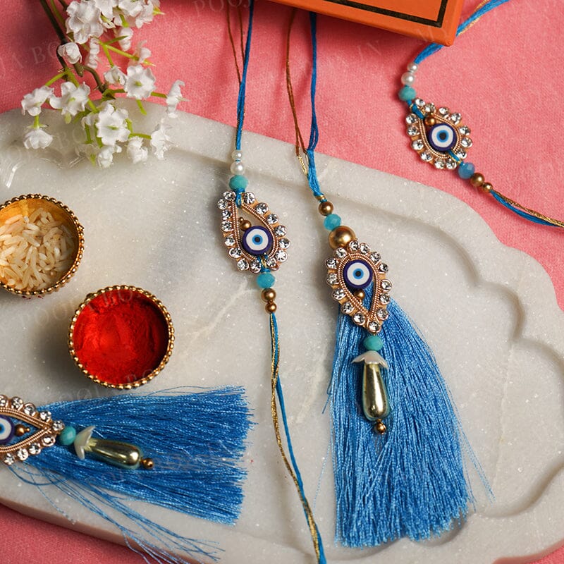 Our Evil Eye Miraculum Bhaiya Bhabhi Rakhi is handcrafted with passion and finesse, boasting a sophisticated and distinguished design. Perfect as a special token of love to show your brother and sister-in-law how much they mean to you, this premium rakhi will be treasured for many years.