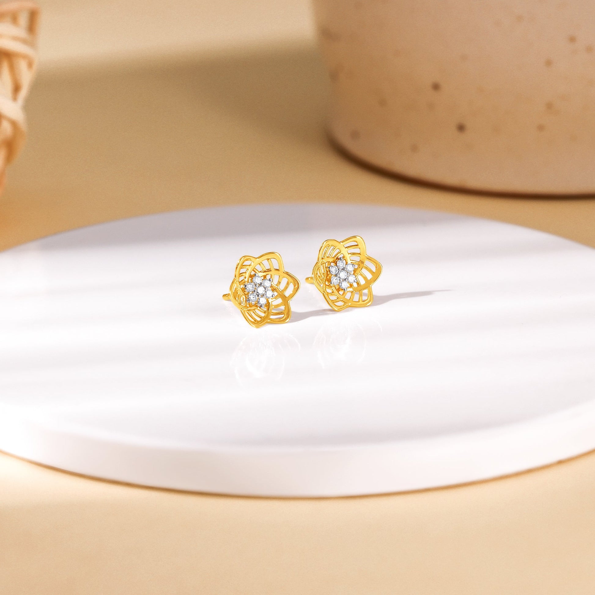 The Gold Floral Love Diamond Stud Earrings are inspired by a bouquet of freshly cut red roses that can make your day even more beautiful.