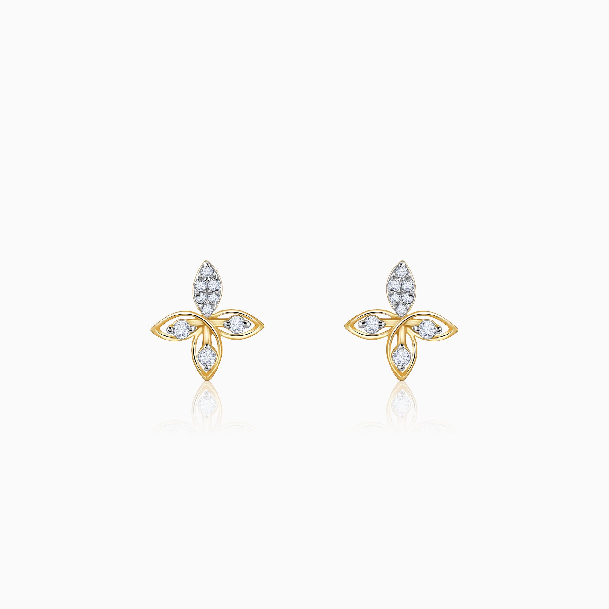 These pure gold earrings feature four intertwined petals, each studded with sparkling lab grown diamonds with intricate detailing.