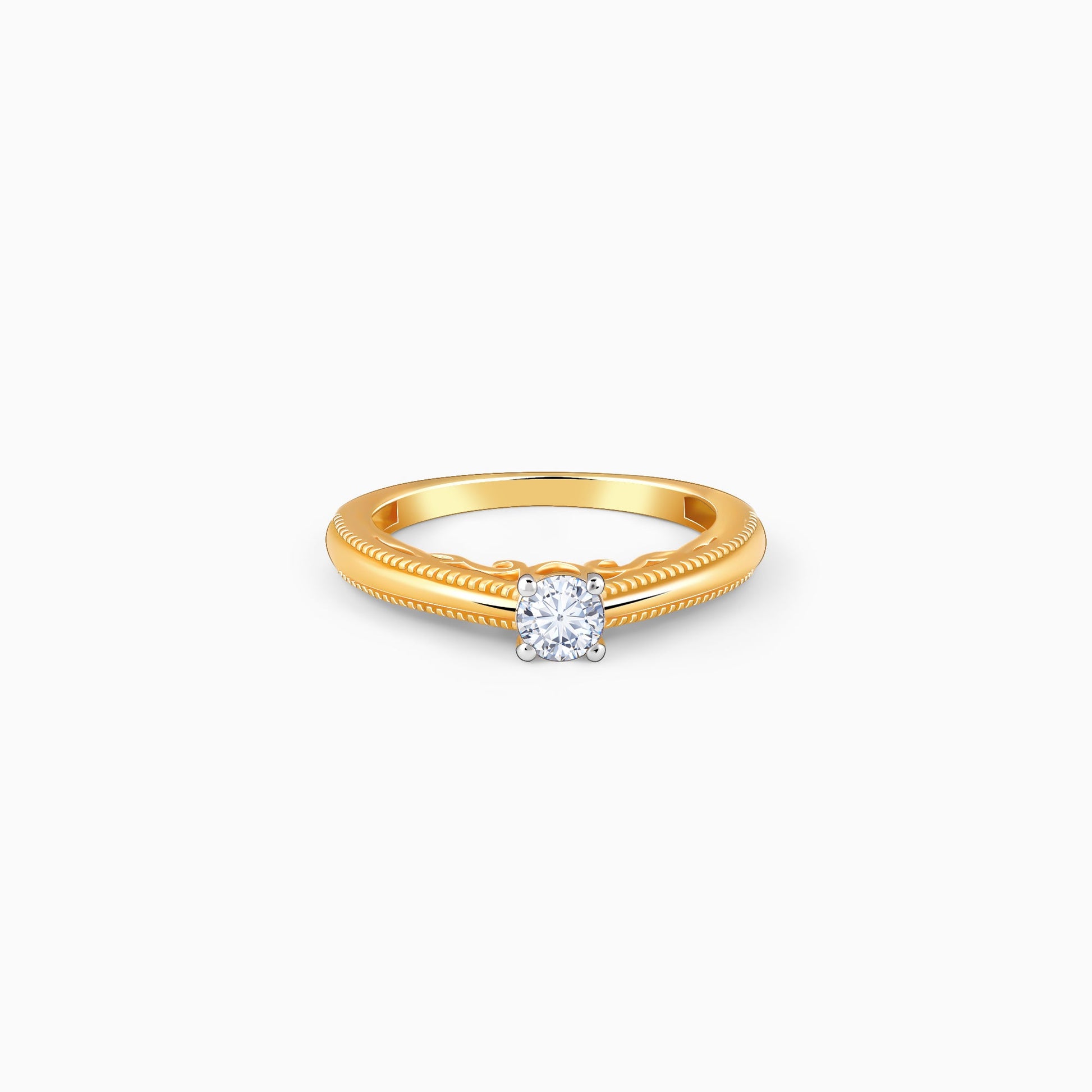 This pure gold ring features an intricate filigree work with a single lab grown diamond at the centre.