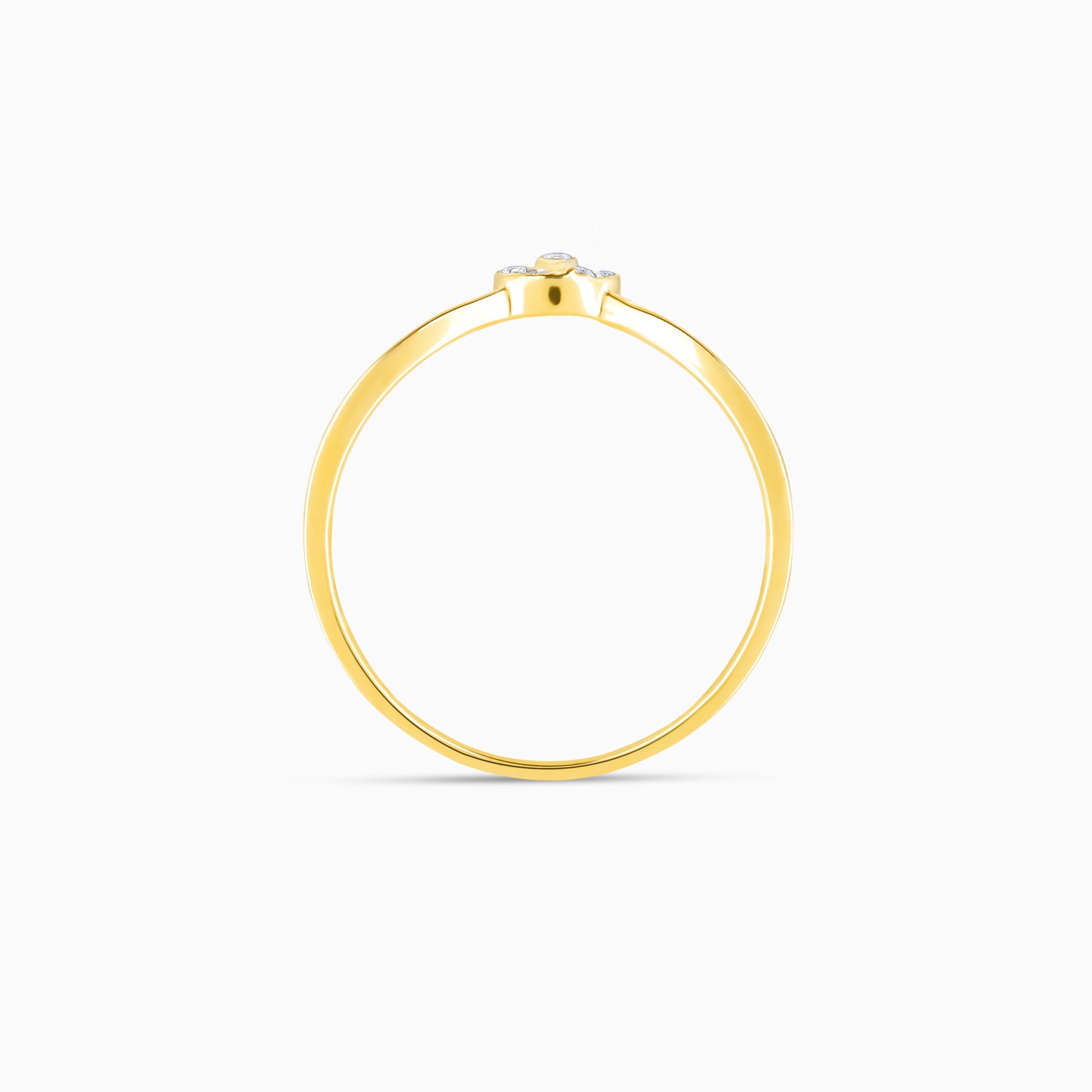 This pure gold ring for women features a sleek band with a semi-floral design studded with lab-grown diamonds.