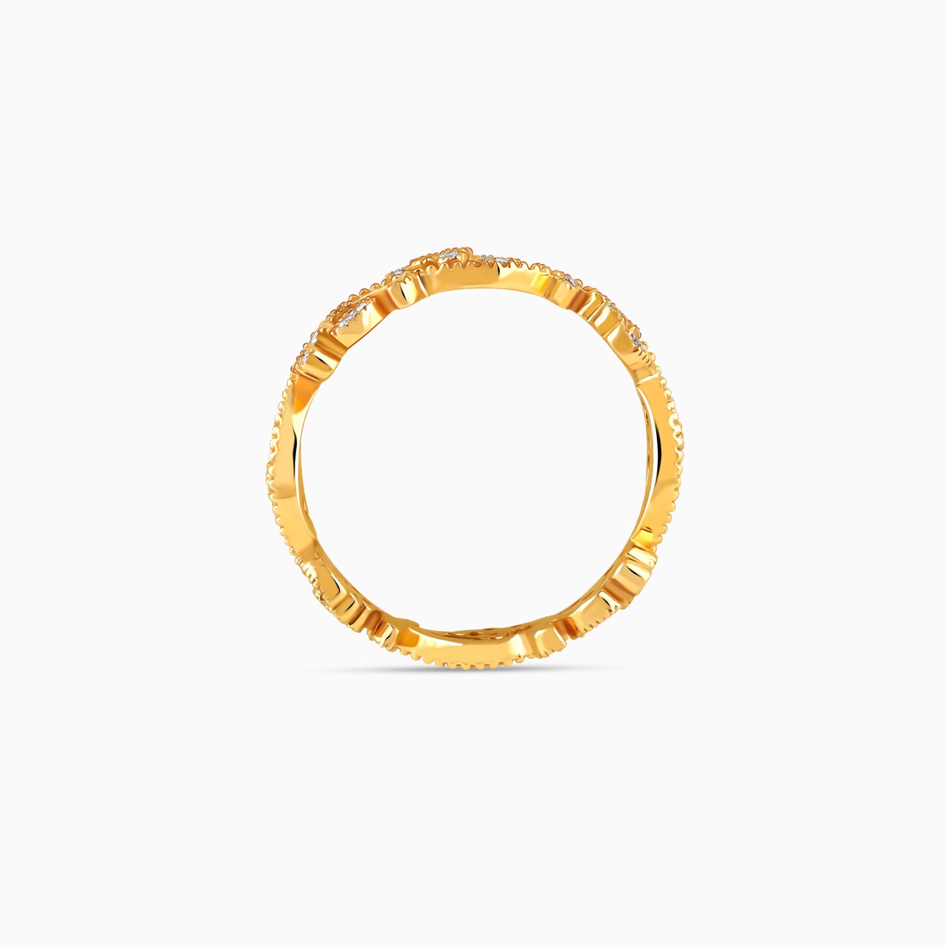 This gold ring has a wavy pattern studded with lab-grown diamonds.