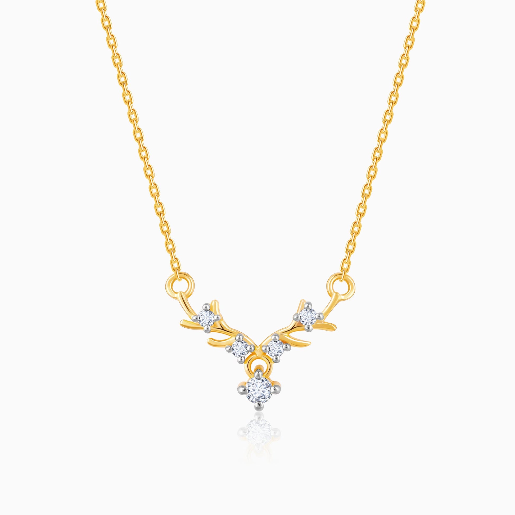 This pure gold necklace for women has a deer antler motif design with several lab grown diamonds accentuating the design.