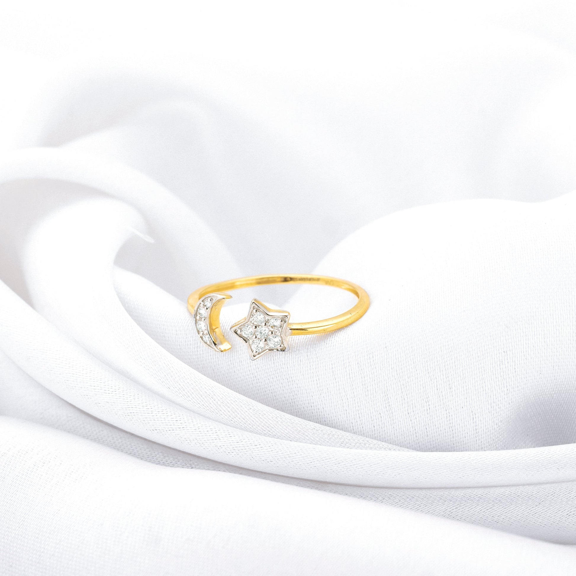 The Gold Moon and Star Diamond Ring is inspired by the beauty of the moon and stars on a calm night.