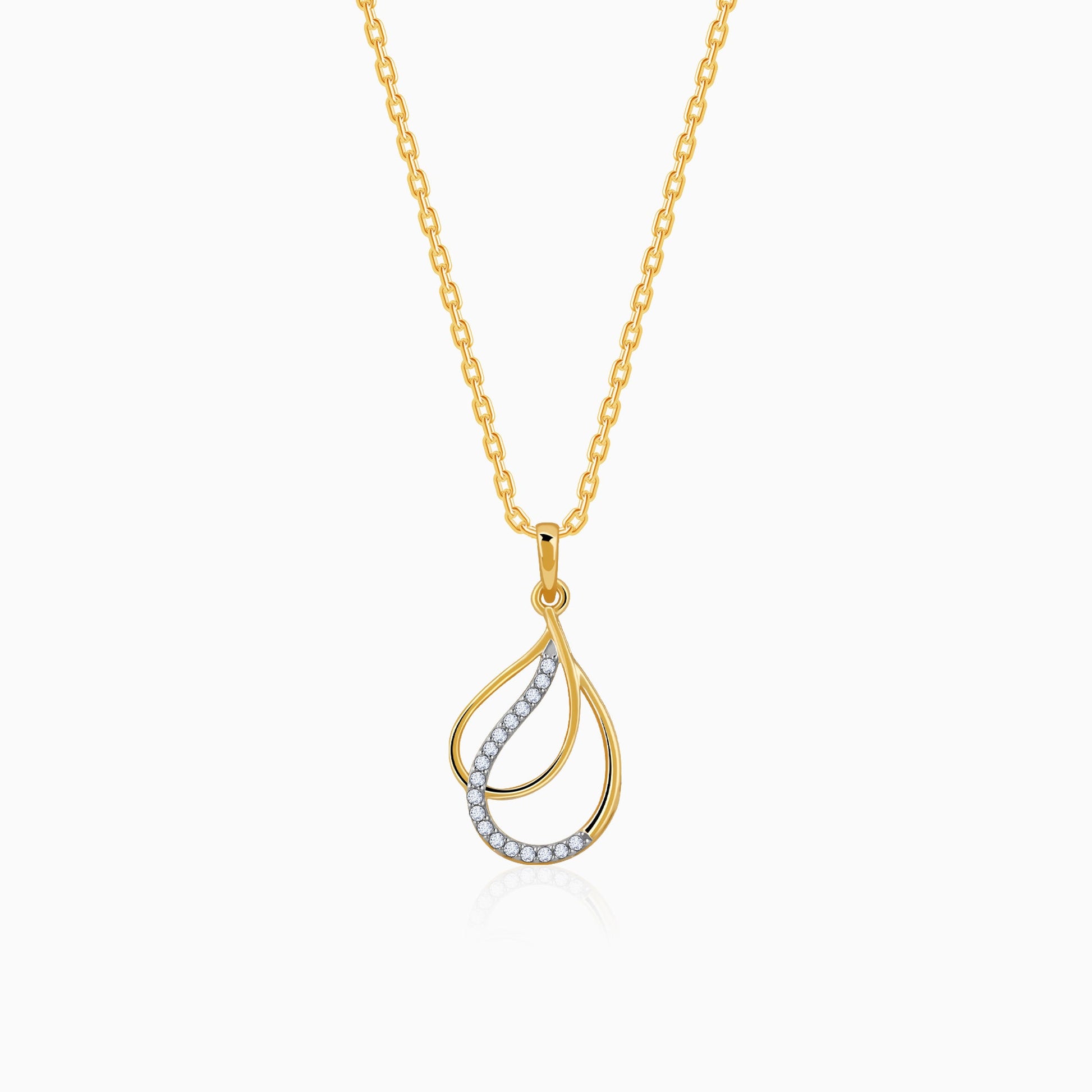 This pure gold pendant for women features a dual teardrop design partially studded with lab-grown diamonds.
