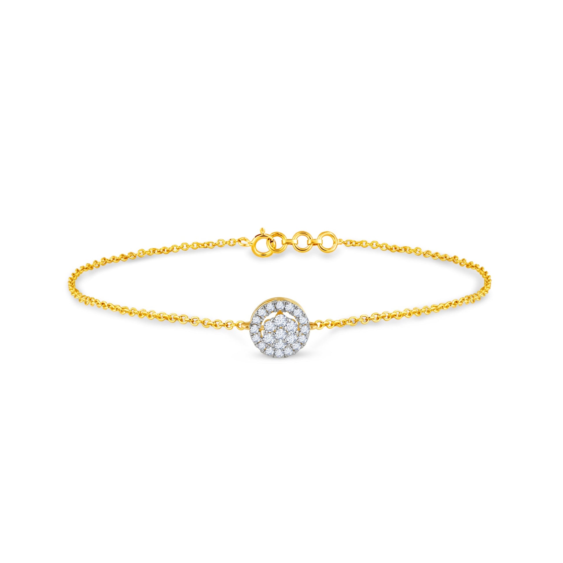 This pure gold bracelet features a circle motif, adorned with lab-grown diamonds.