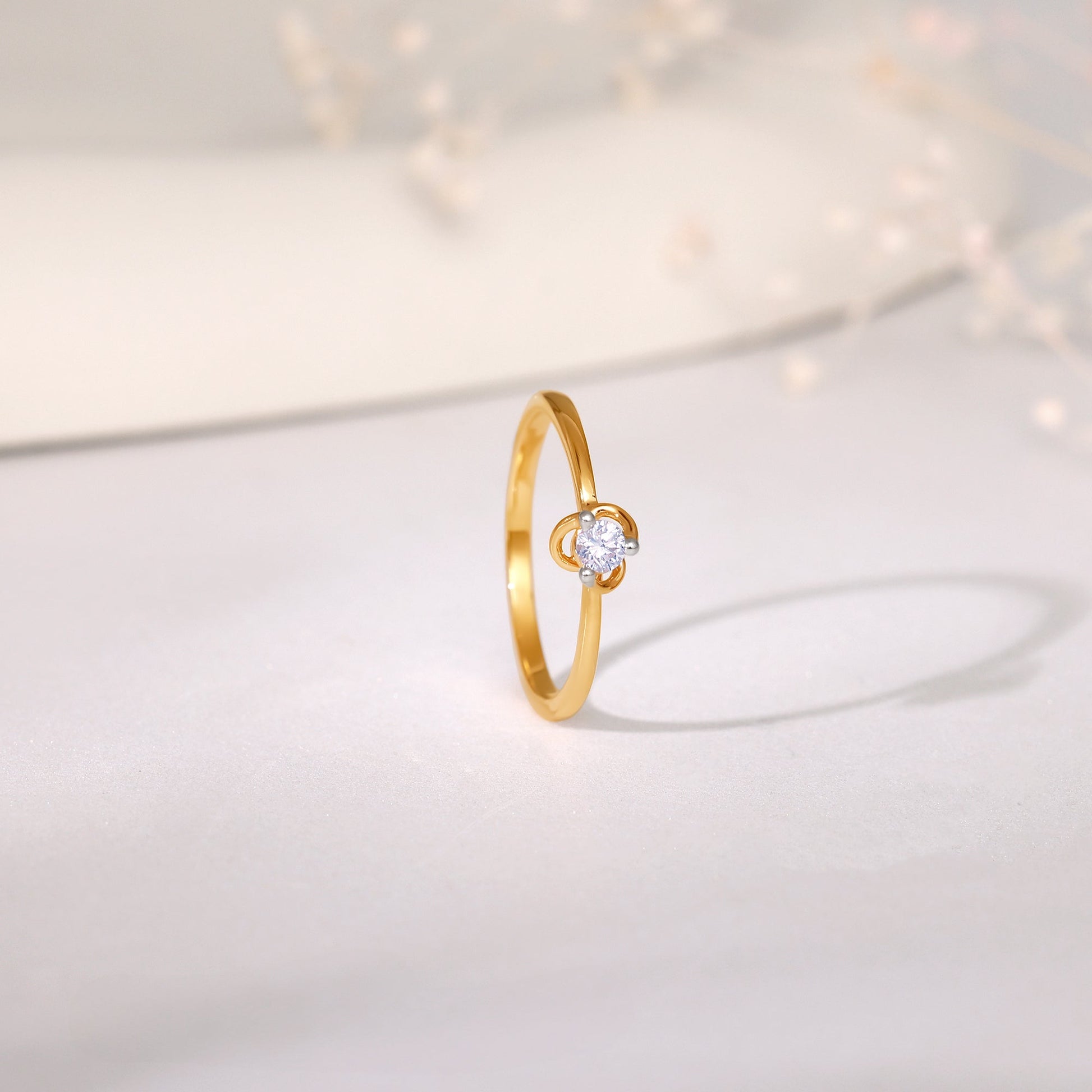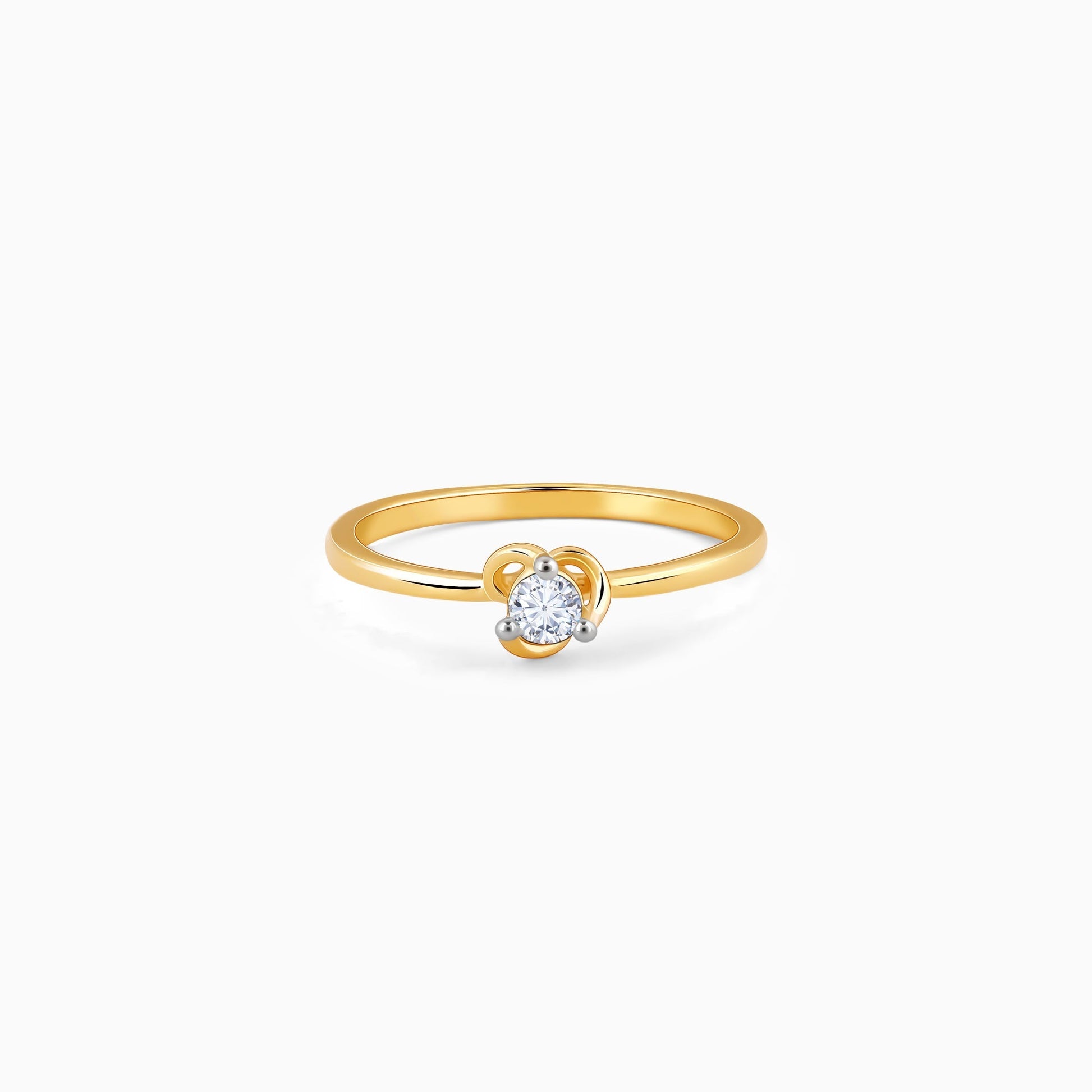 This pure gold ring for women has a sleek band and an abstract floral motif studded with lab diamonds.