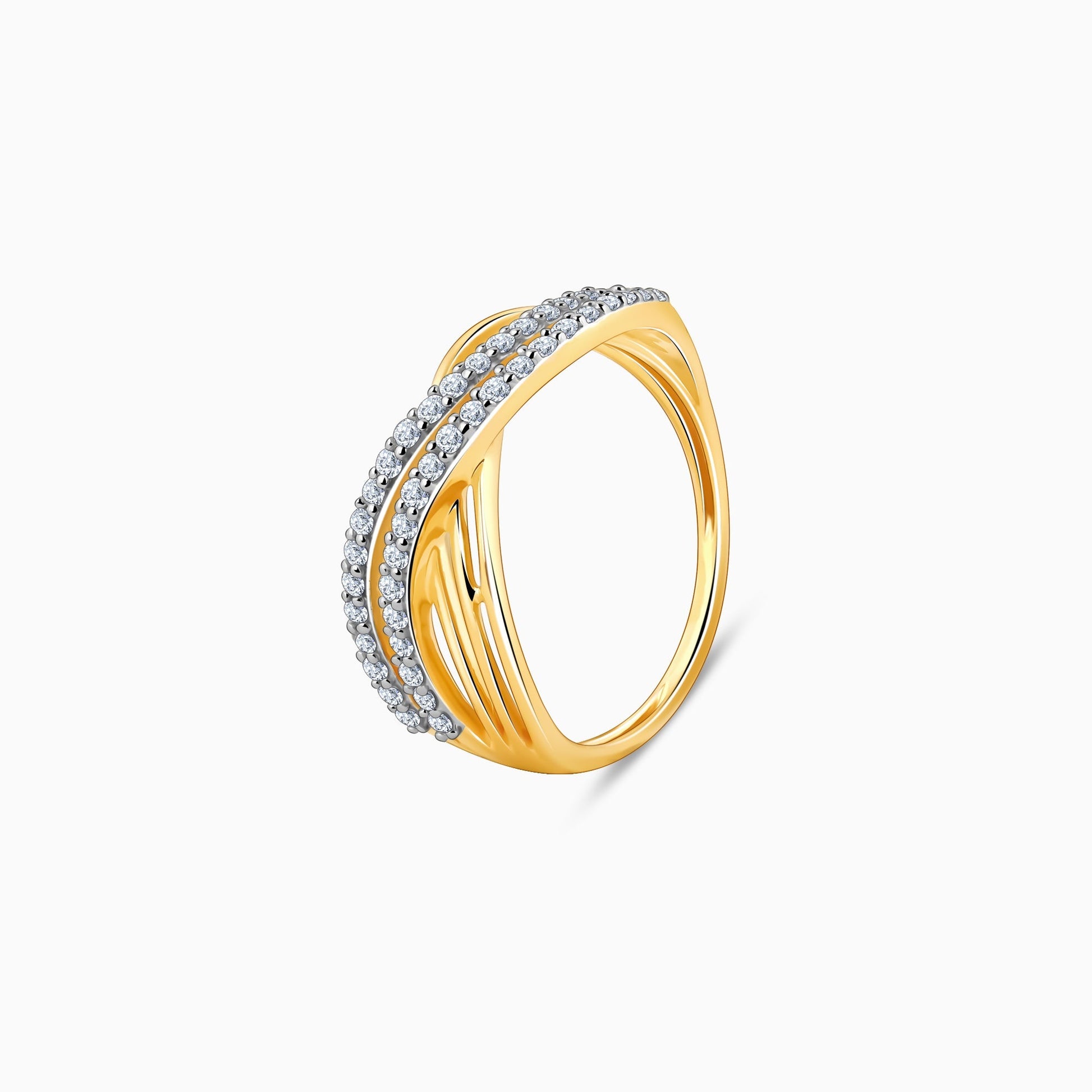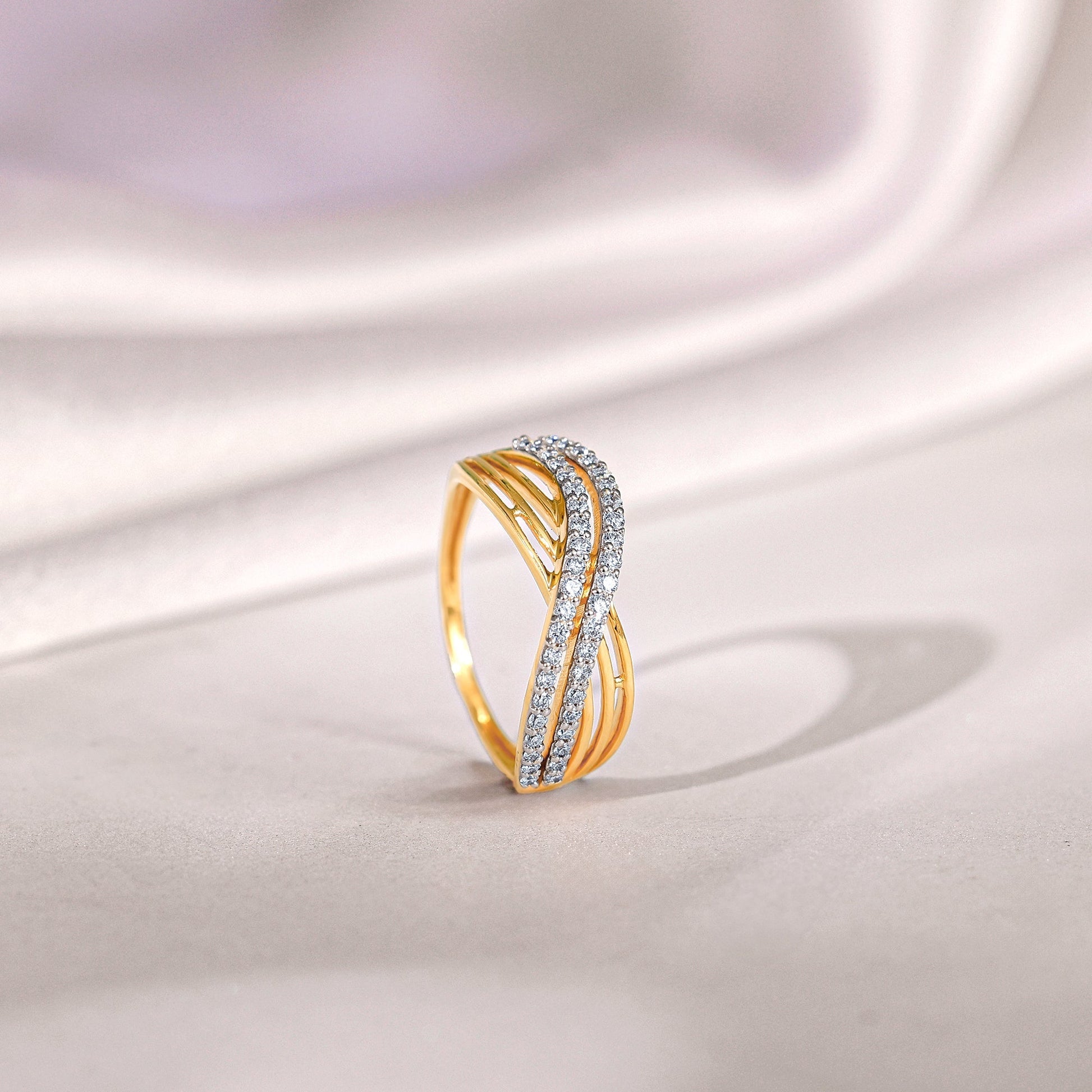 This pure gold ring features wave-like patterns intersecting one another and partially studded with lab-grown diamonds.