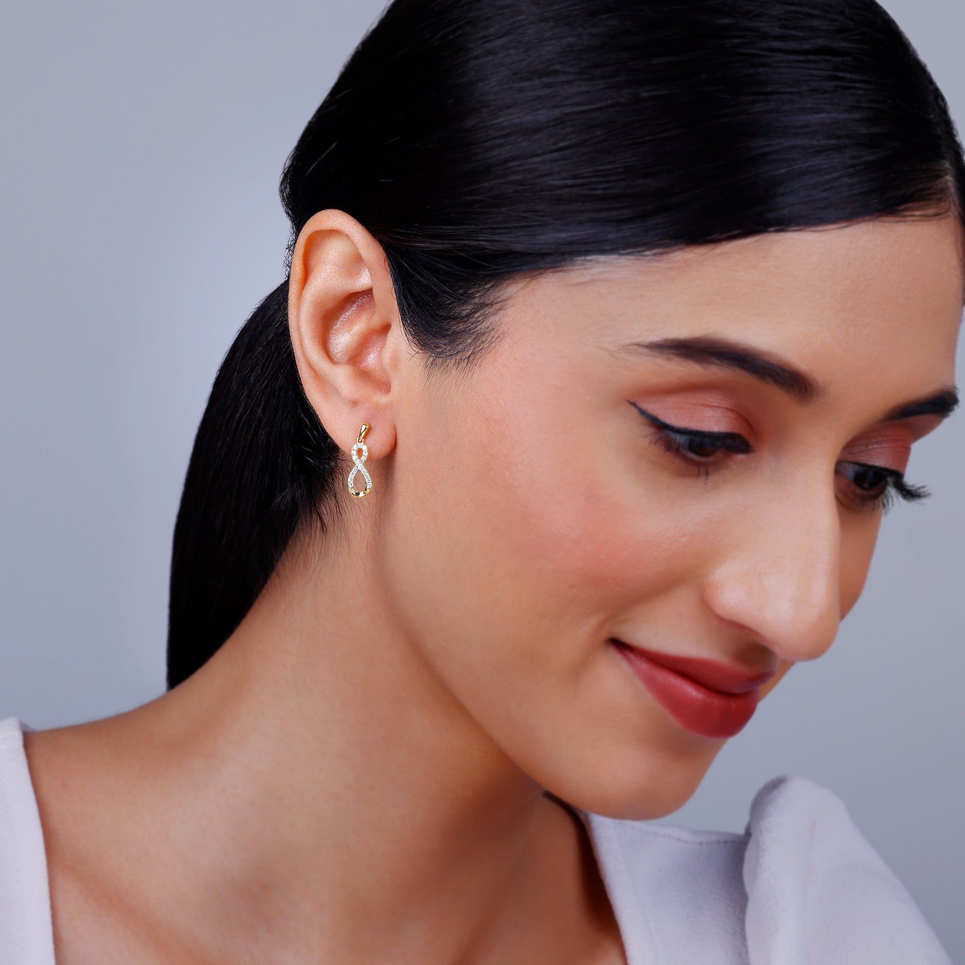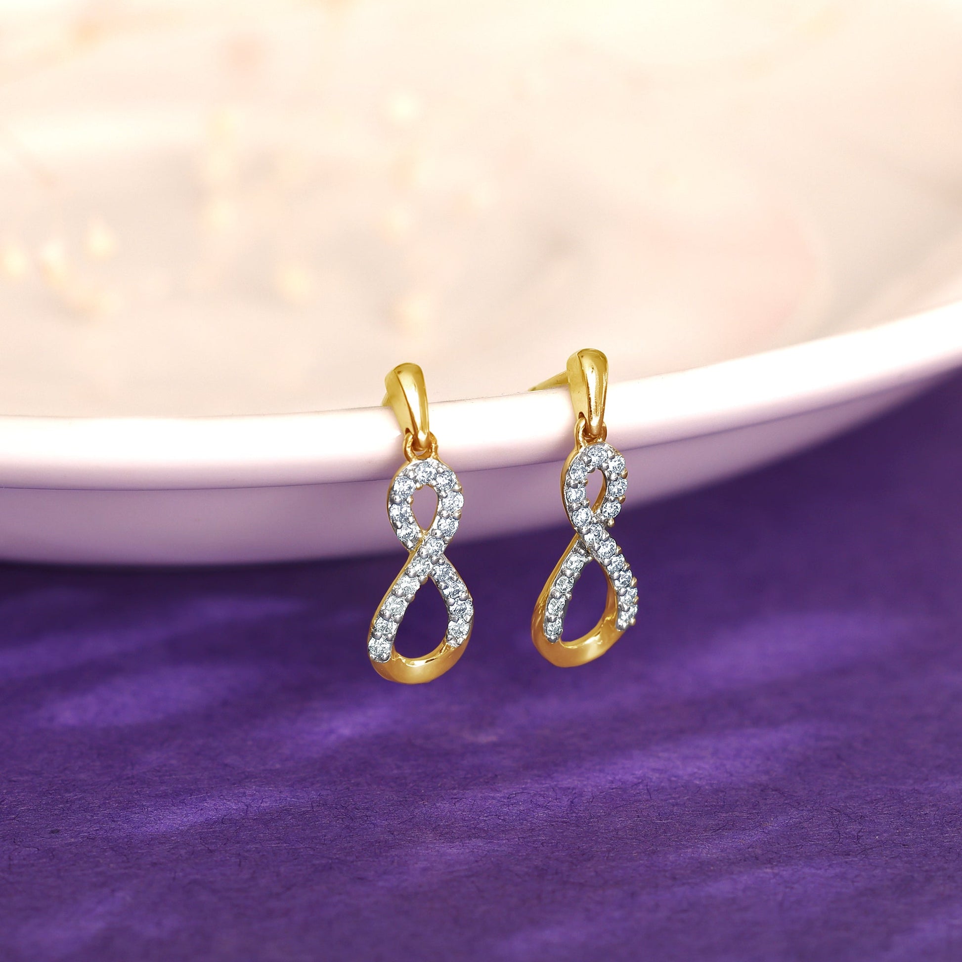These pure gold earrings feature an infinity design with lab-grown diamonds.