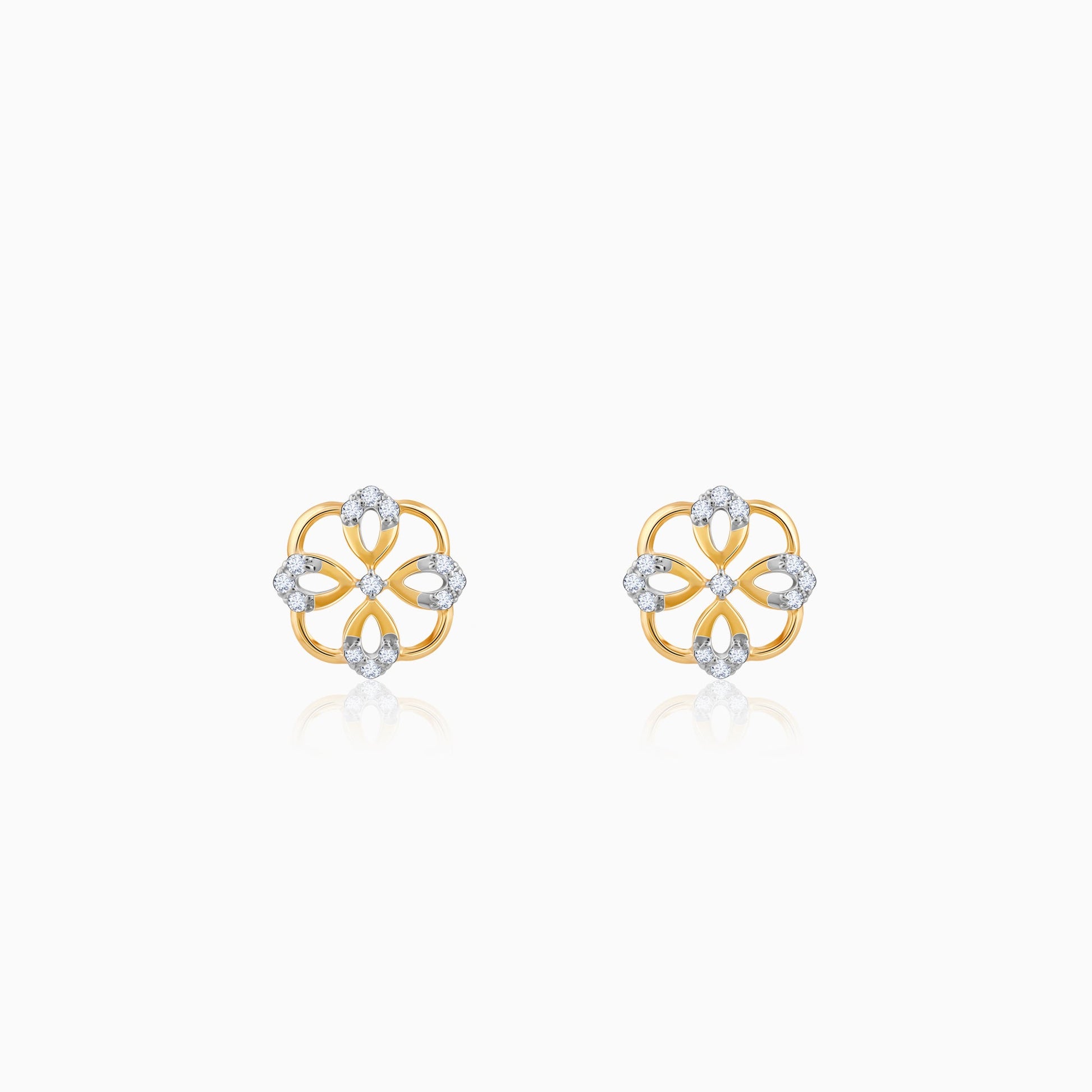 These pure gold earrings showcase a beautiful design with intricate details studded with lab grown diamonds.