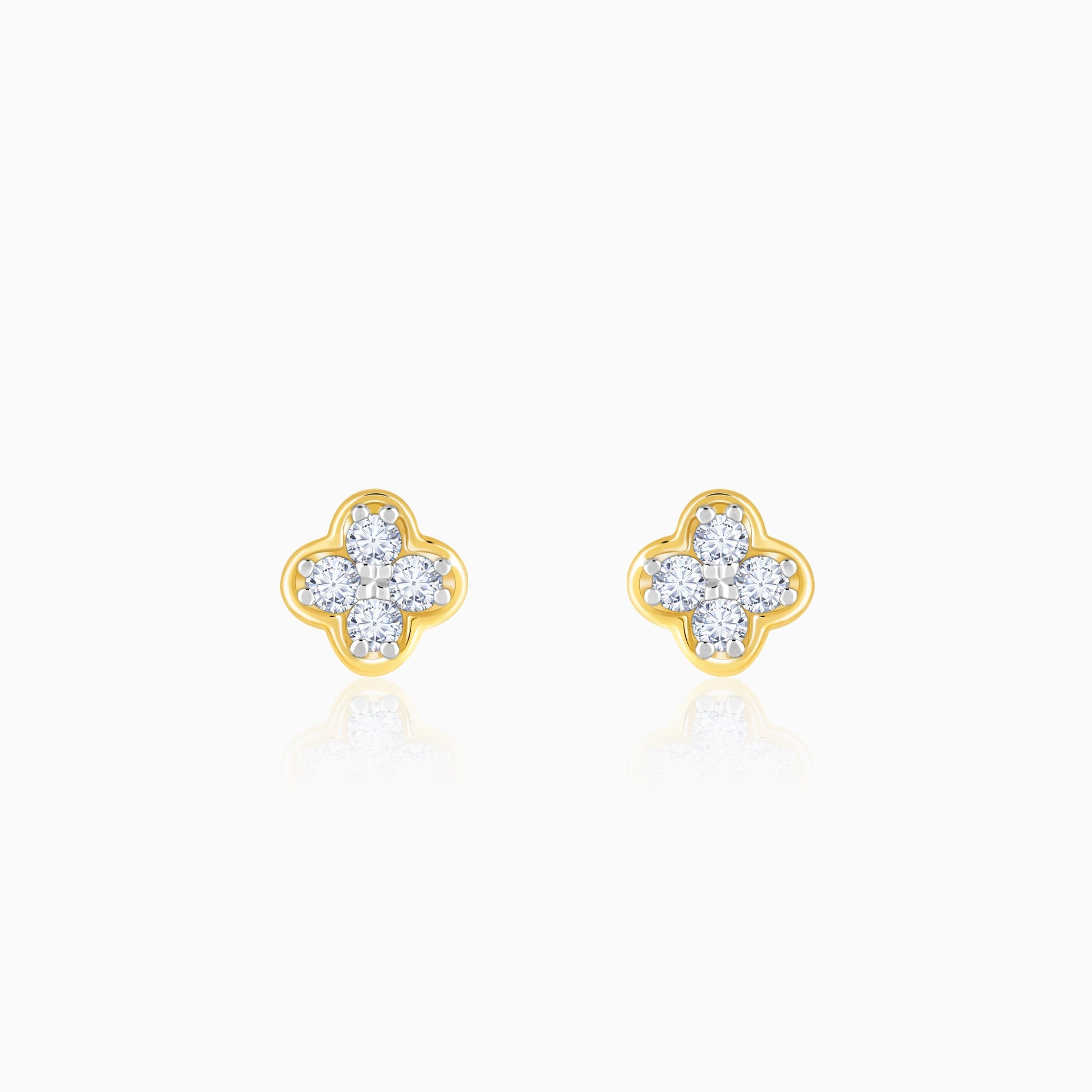 These pure gold earrings for women feature a minimal floral motif, set with lab grown diamonds.
