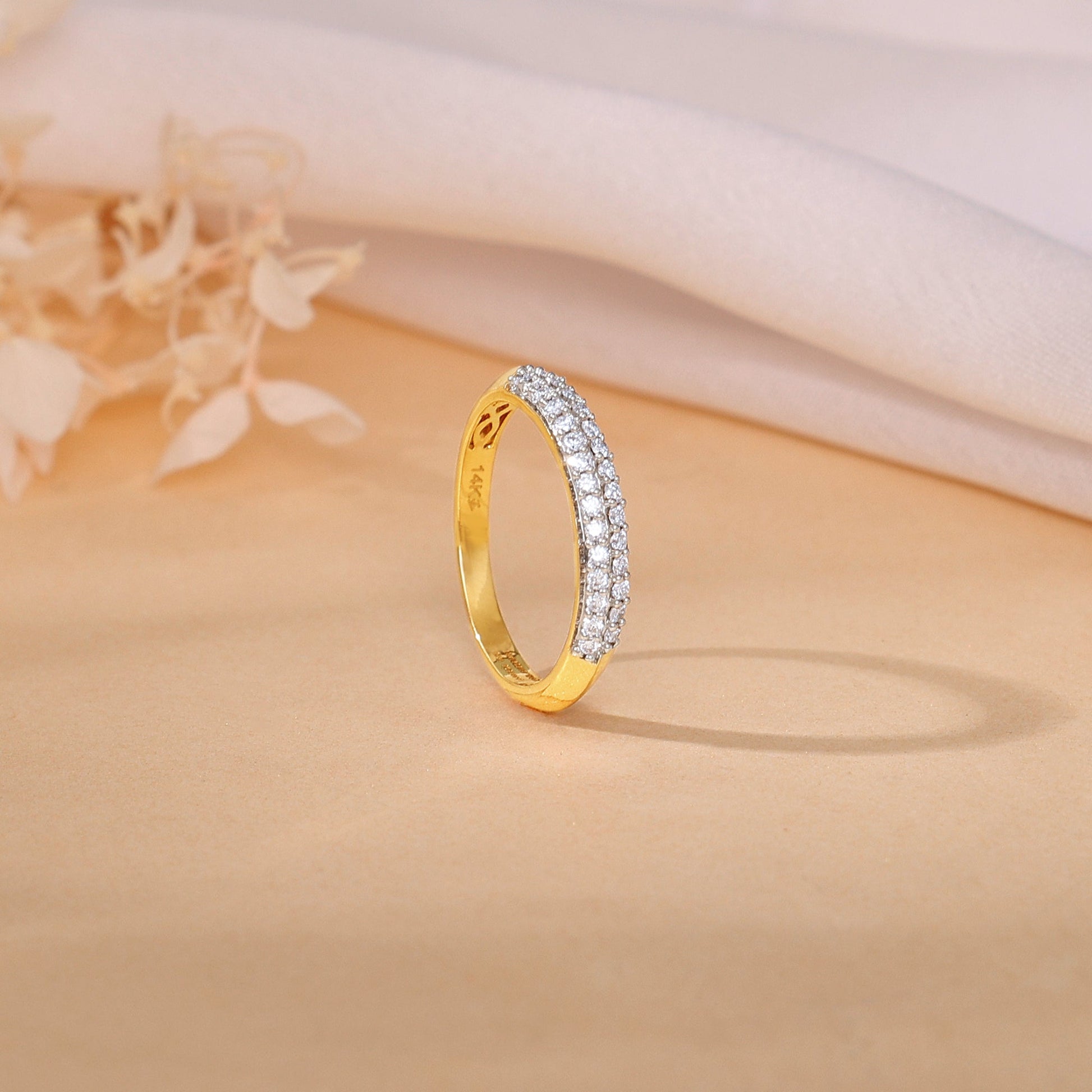 This pure gold ring is set with lab-grown diamonds in a paved setting.