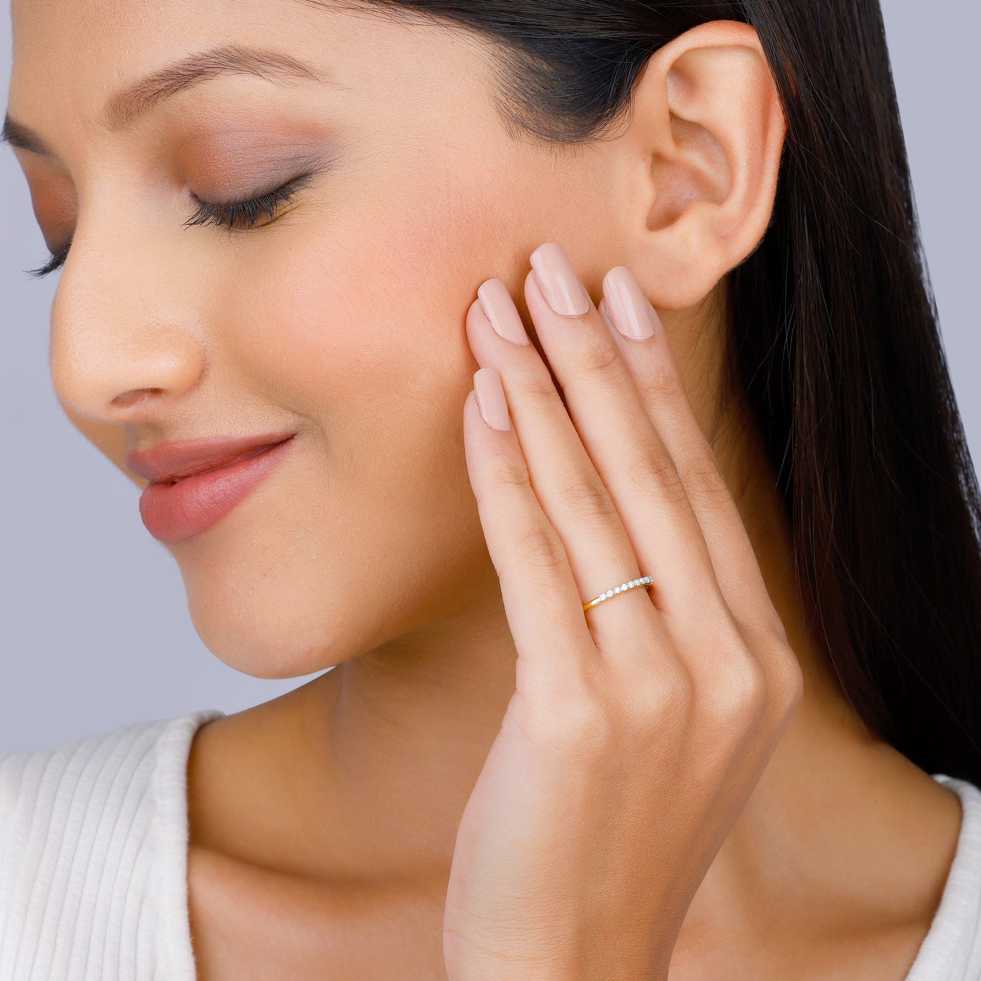Style this diamond studded gold ring with a full-sleeve bodycon dress.