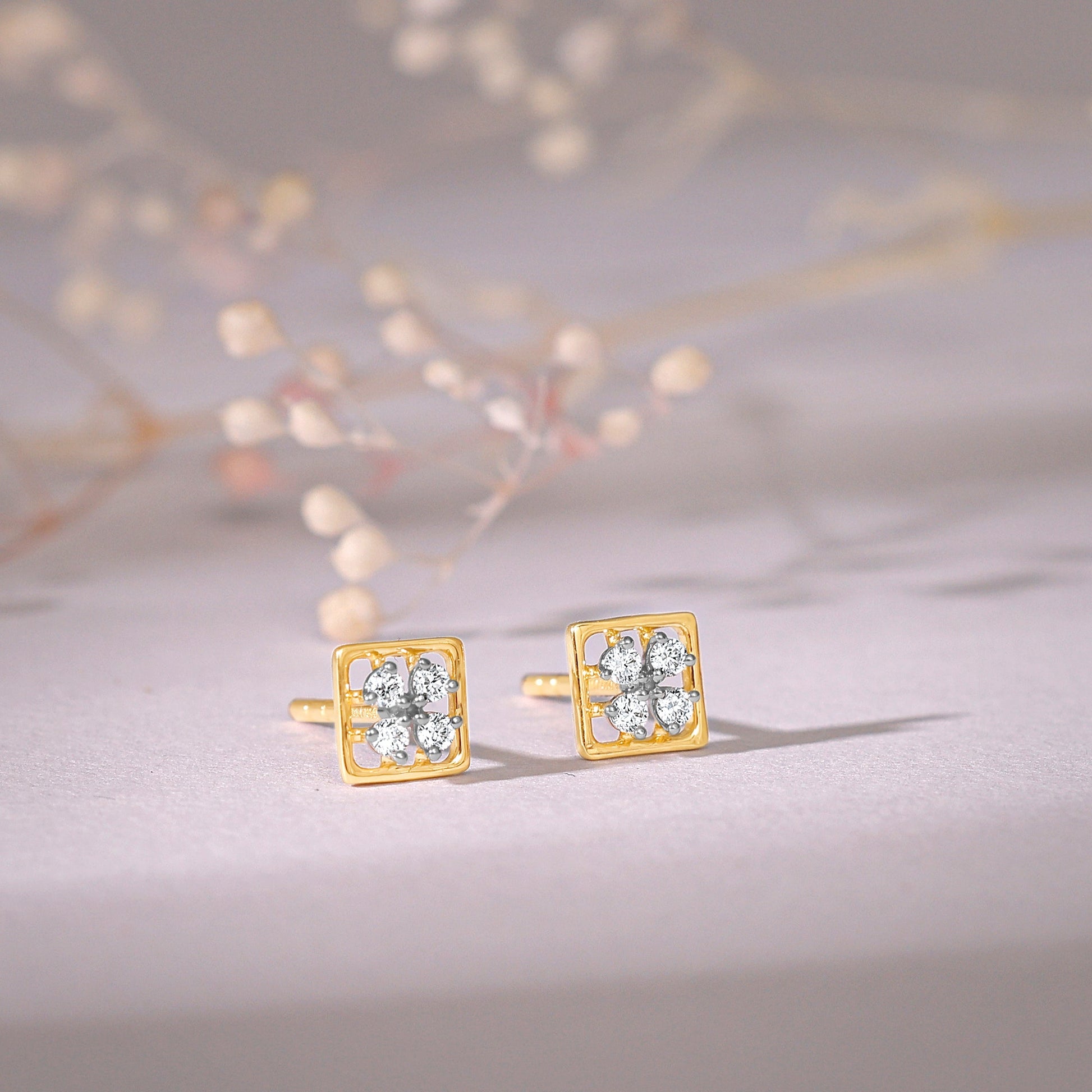 This gold stud earrings have a square motif studded with lab-grown diamonds.