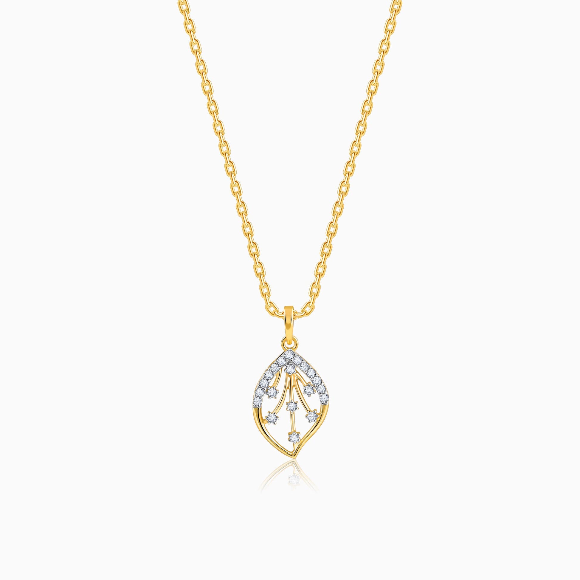 This pure gold pendant is in the shape of a leaf with the base as well as the inner veins studded with lab diamonds.