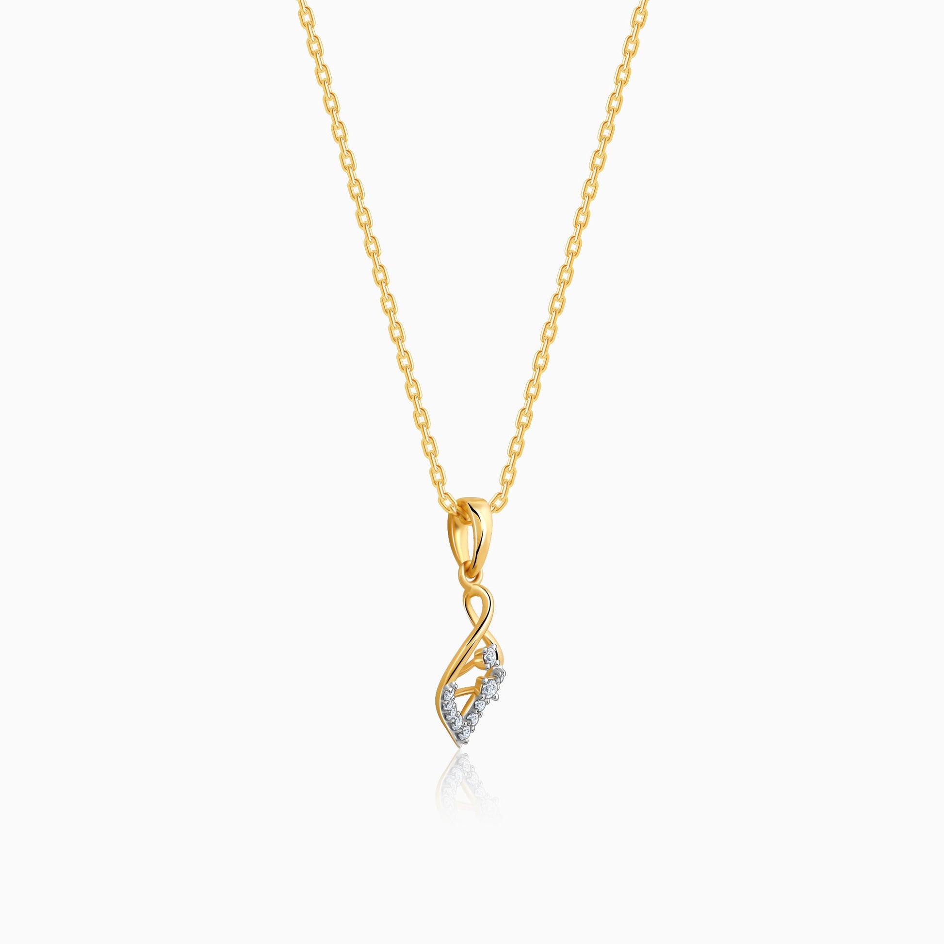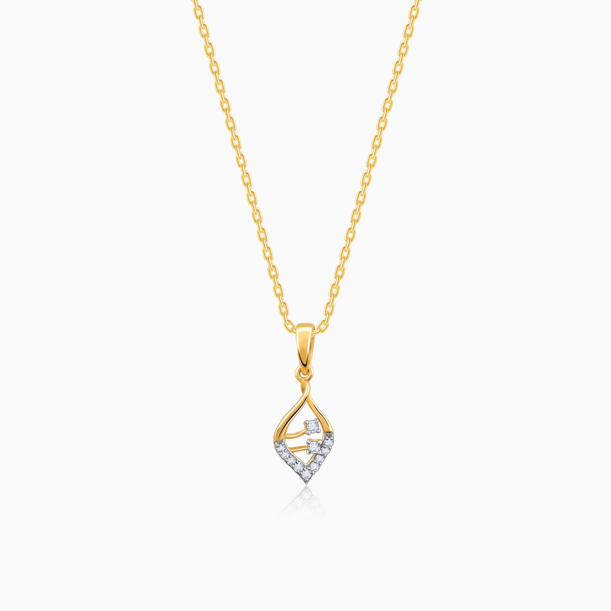 This gold pendant features a leaf motif nestling lab-grown diamonds.