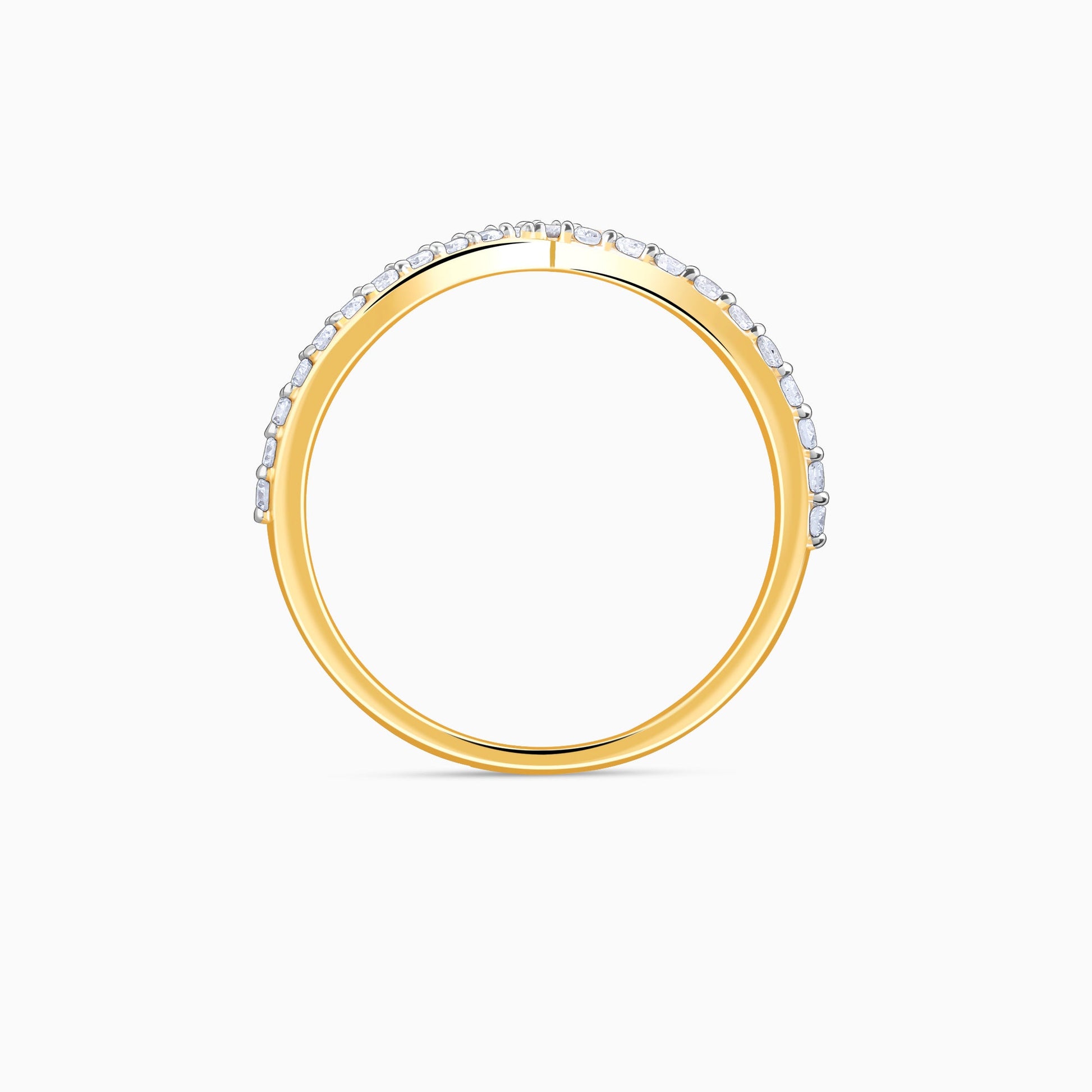 This pure gold ring for women features a two-tier V-shaped design with a row of lab grown diamonds on either side of each row.