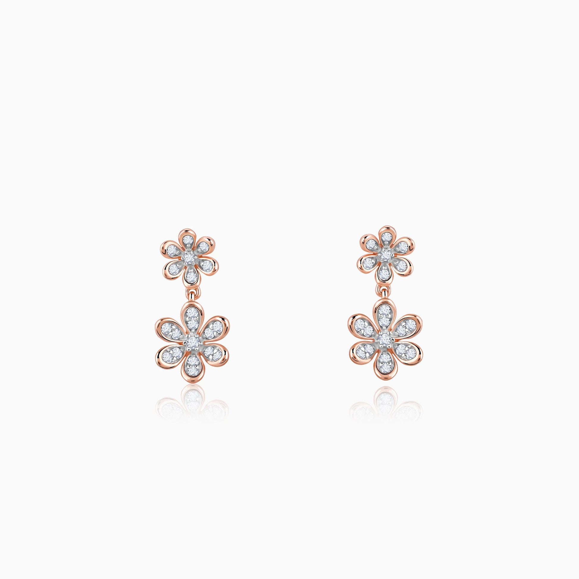 These pure rose gold earrings feature dual flower motifs, with lab-grown diamonds.