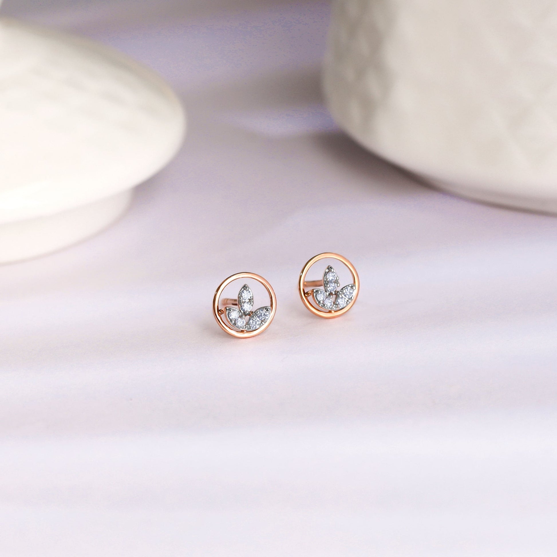 Rose Gold Floral Circle Diamond Earrings