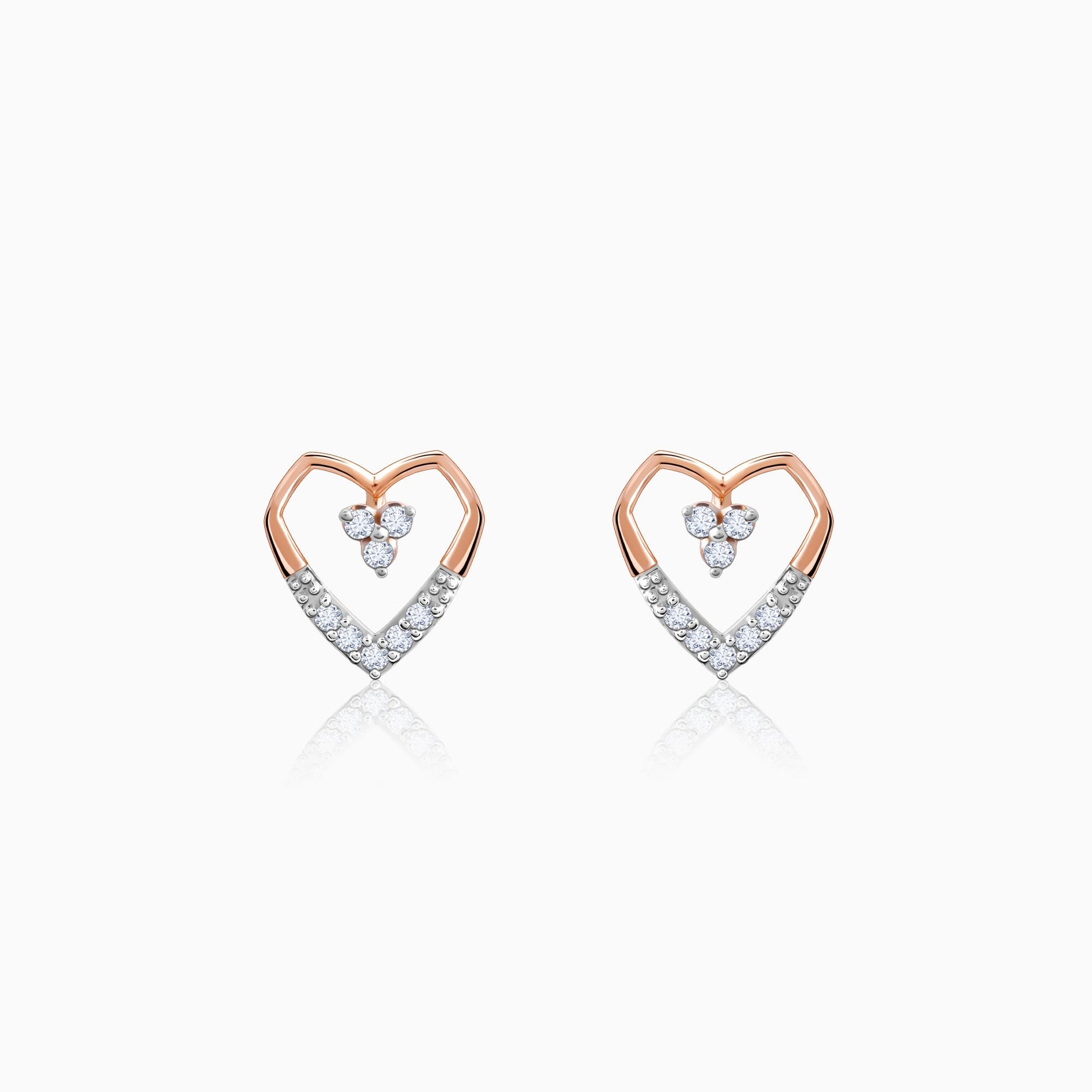 Rose Gold Heart Sculpt Diamond Earrings