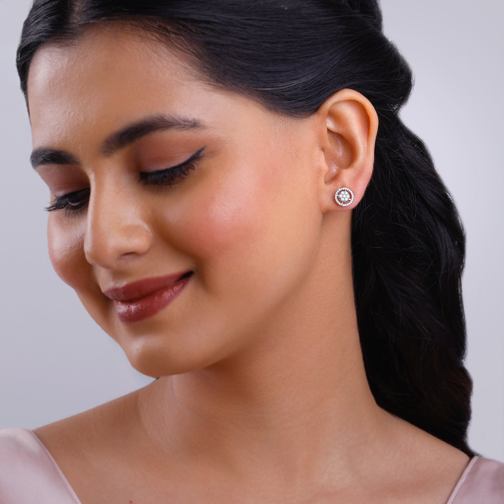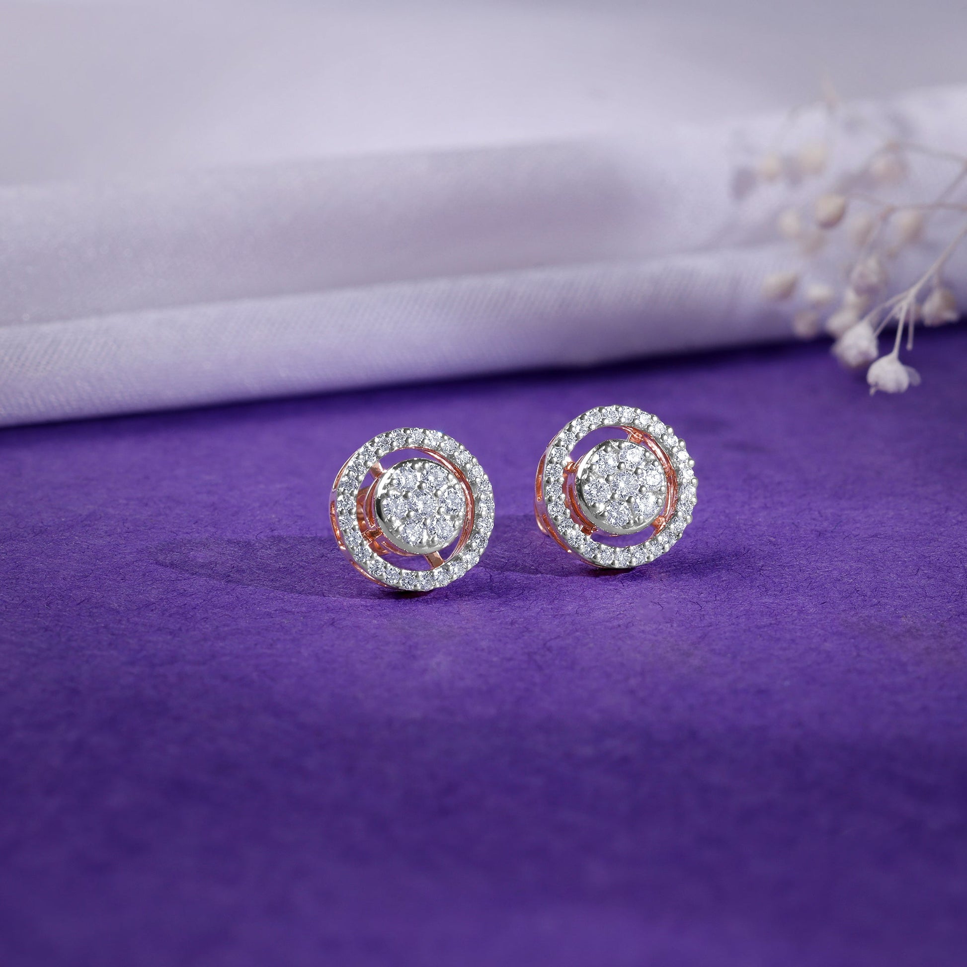 Rose Gold Poise Halo Diamond Earrings