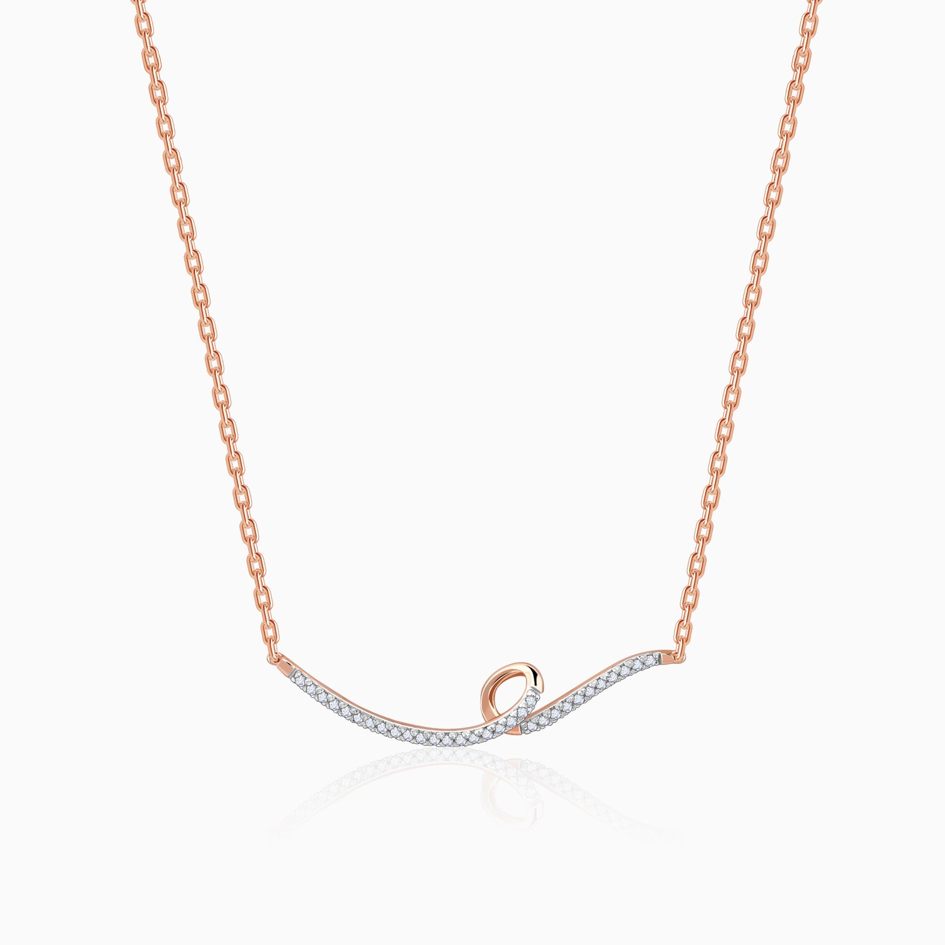 This pure rose gold necklace features a swirl design studded with lab-grown diamonds.