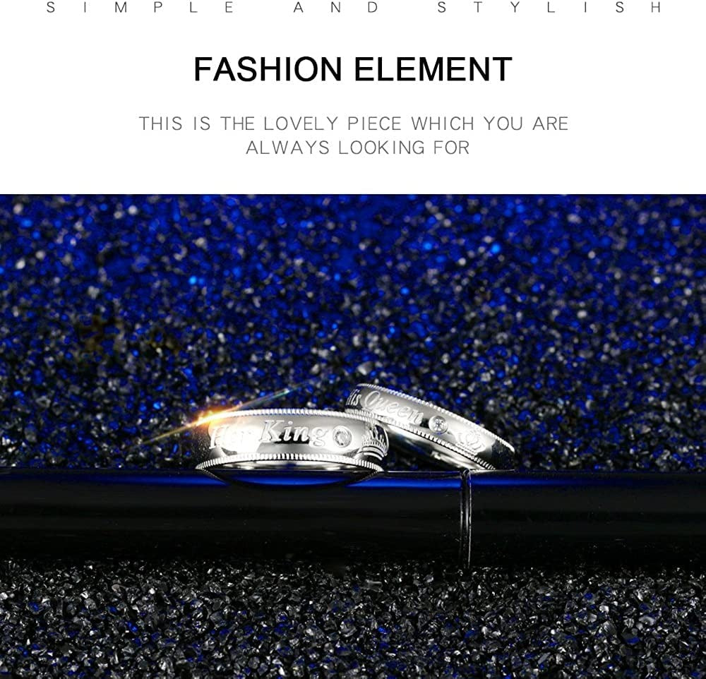 Design Style: A beautifully crafted matching ring set, symbolizing love and partnership. The "Her King" and "His Queen" engravings, adorned with delicate crown details, make this pair a perfect representation of commitment and affection. The intricate beaded edges add a vintage charm, while the adjustable design ensures a comfortable fit.