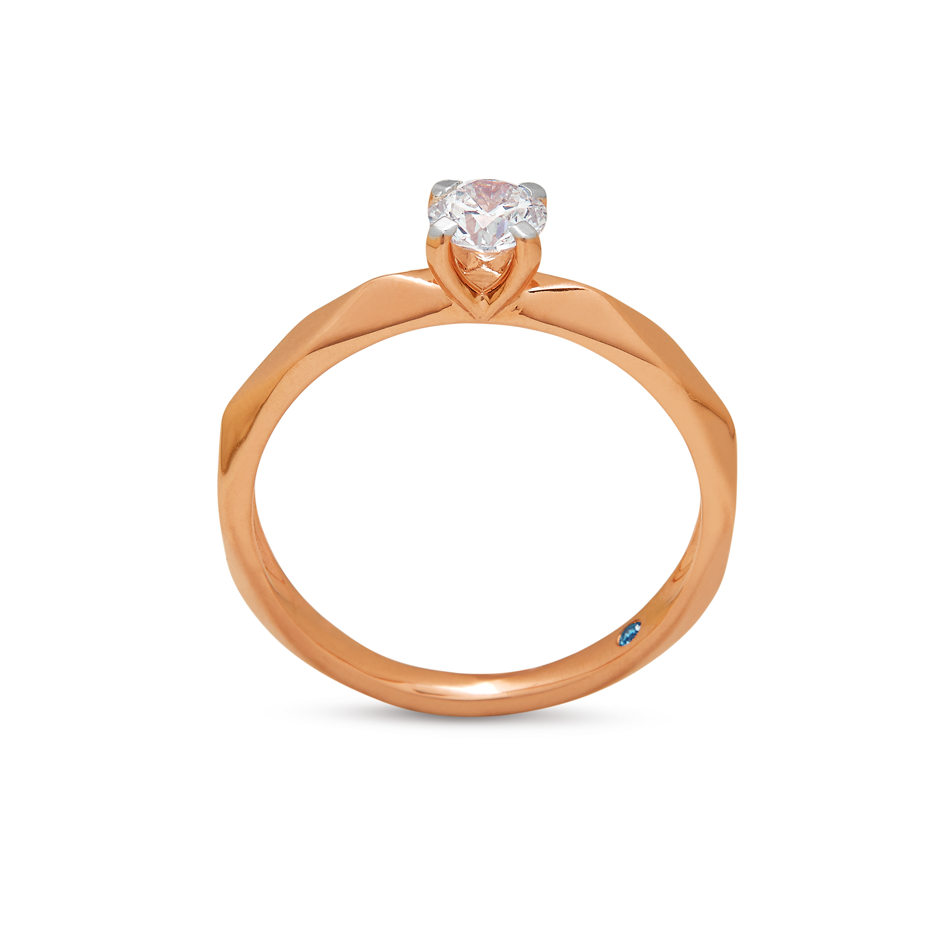 A rose-gold ring sculpted into soft, undulating curves that rise to cradle a brilliant round diamond—where fluid form meets timeless sparkle.