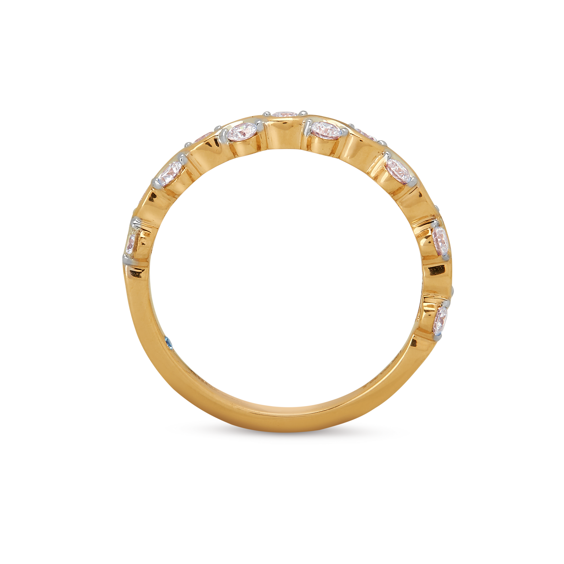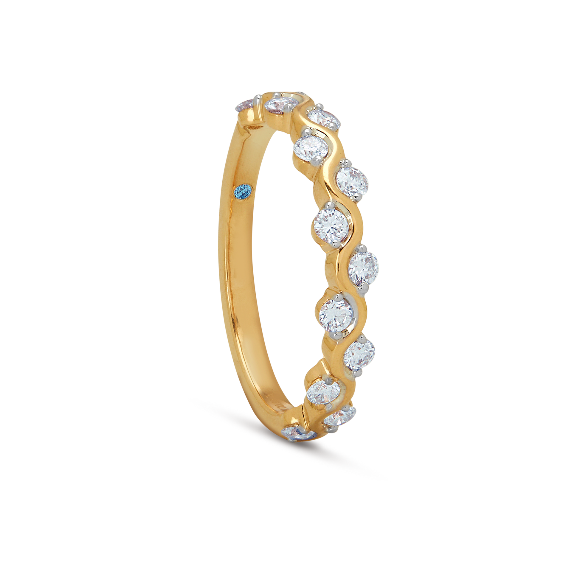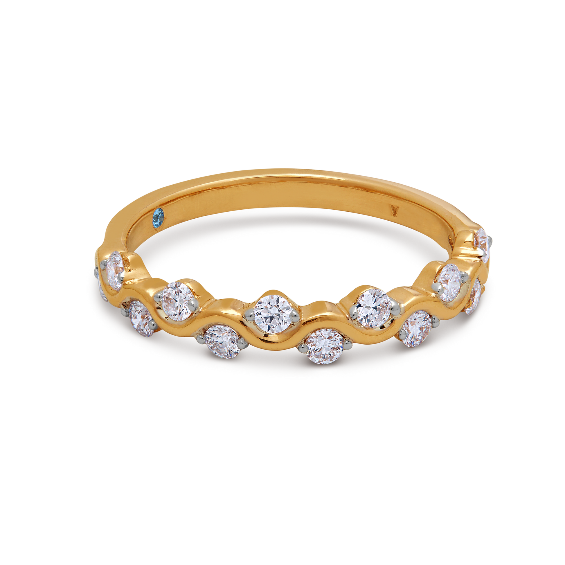 Brilliant round diamonds flanking a sleek yellow gold band—a perfect balance of modern minimalism and timelessness.