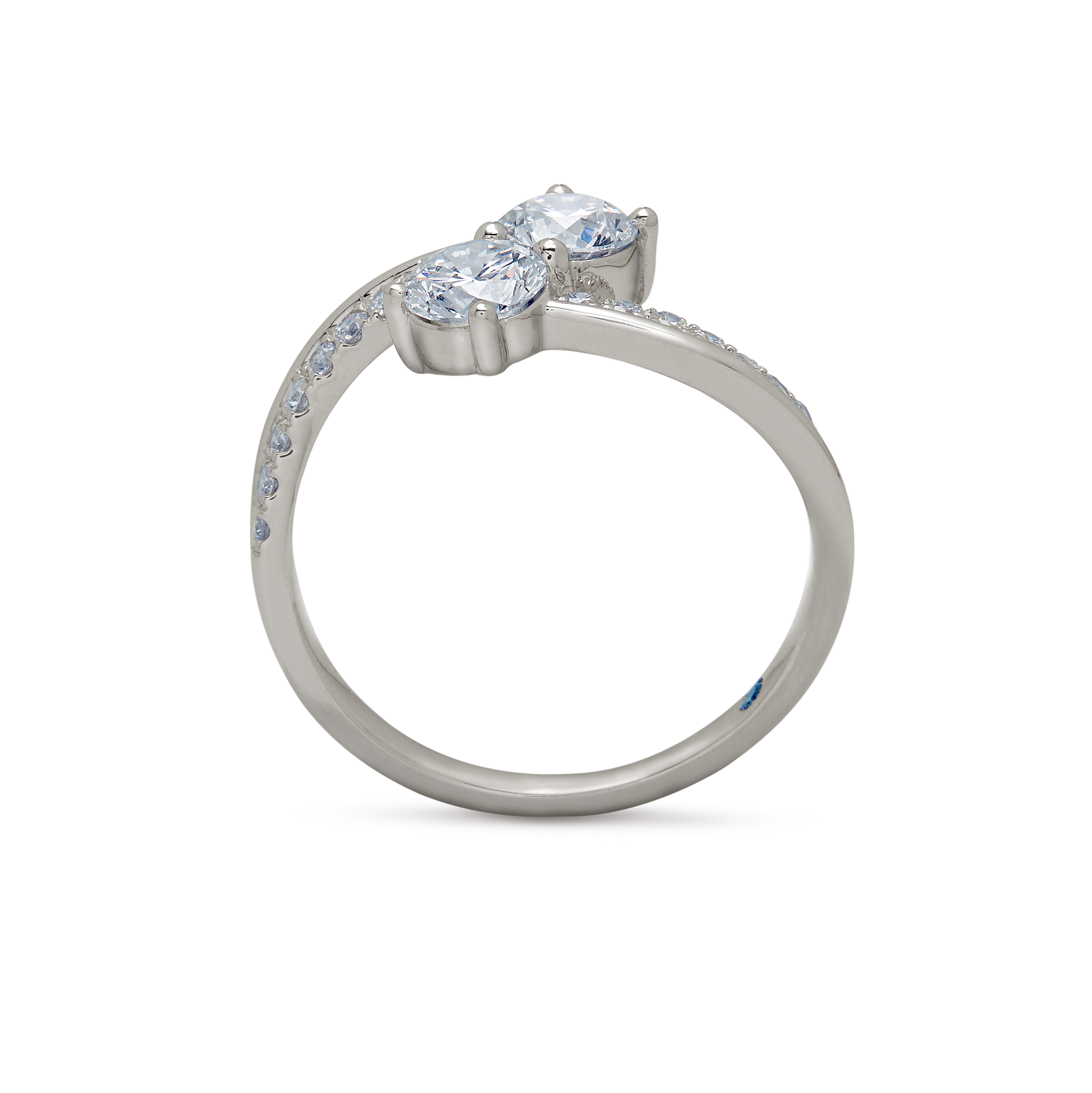 Twin round diamonds anchored on a pavé white gold band — a modern constellation of brilliance.