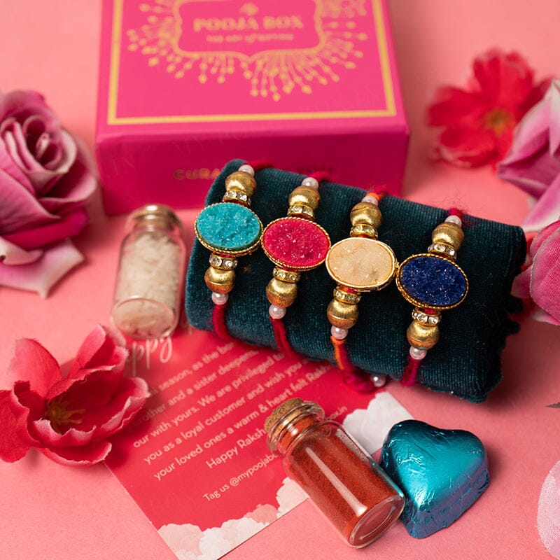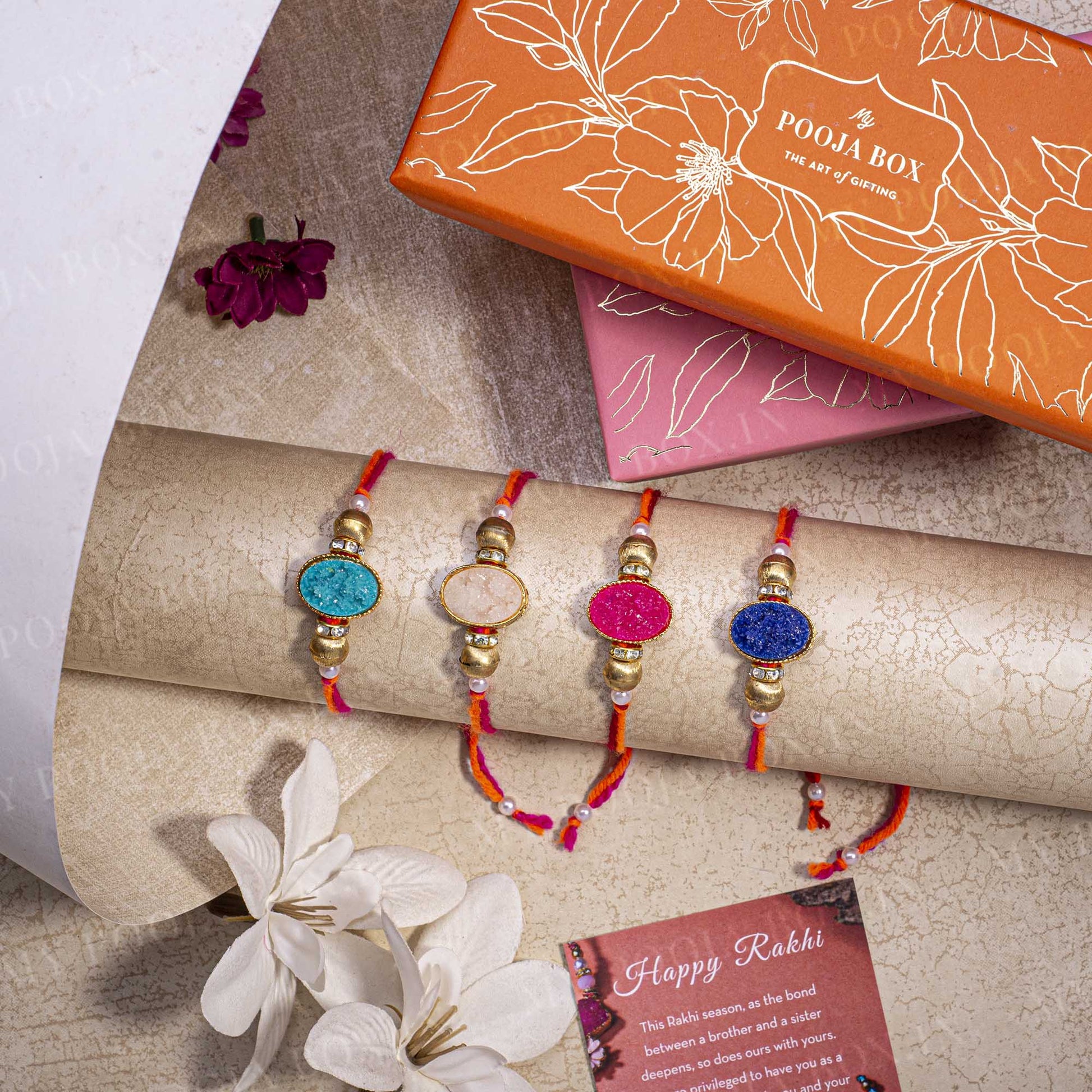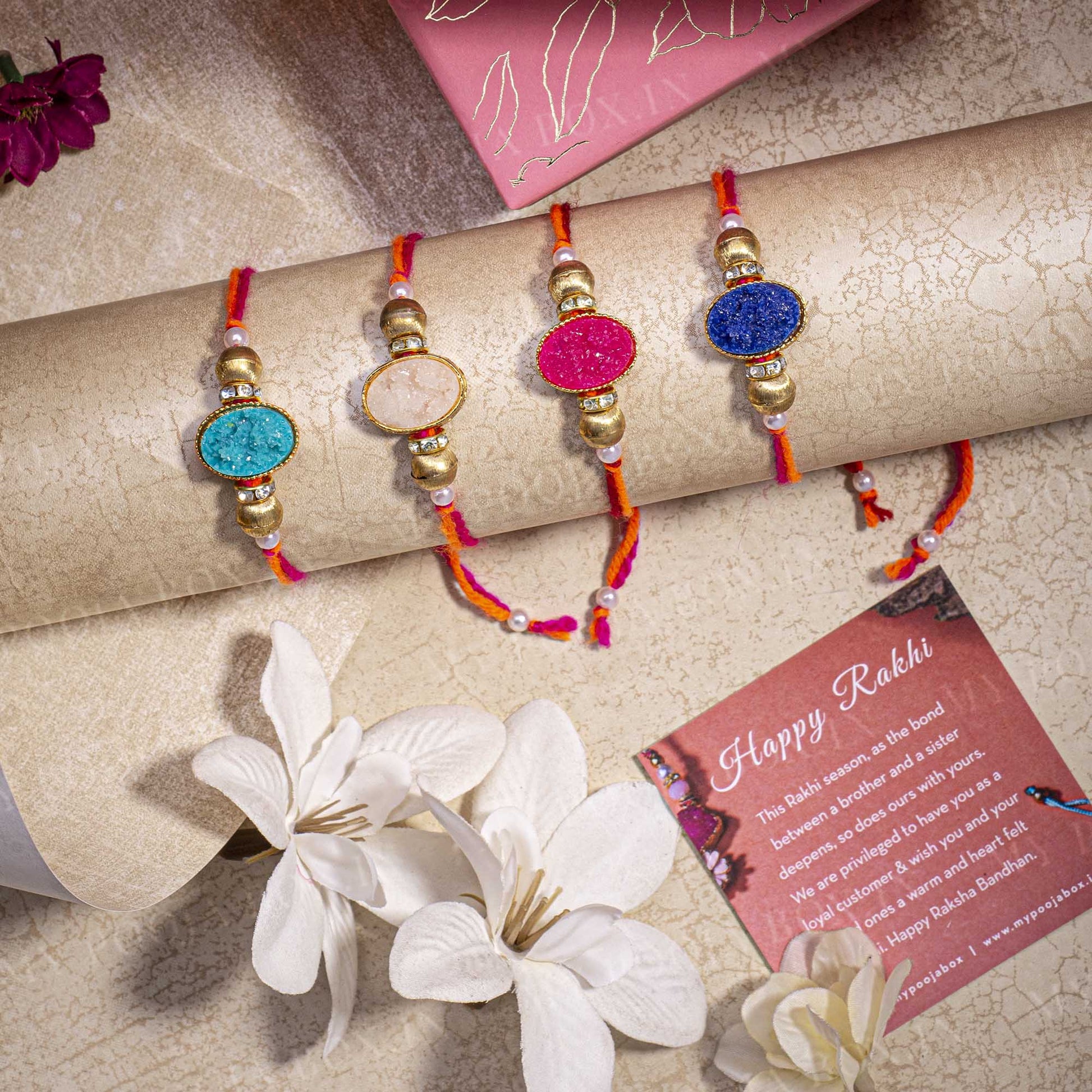 Rakshabandhan, the age-old tradition where siblings acknowledge & honor each other 'ss love and respect. This rakhi comes with a stunning multicolour stone as the center piece that makes it look more special than anything else on the market.